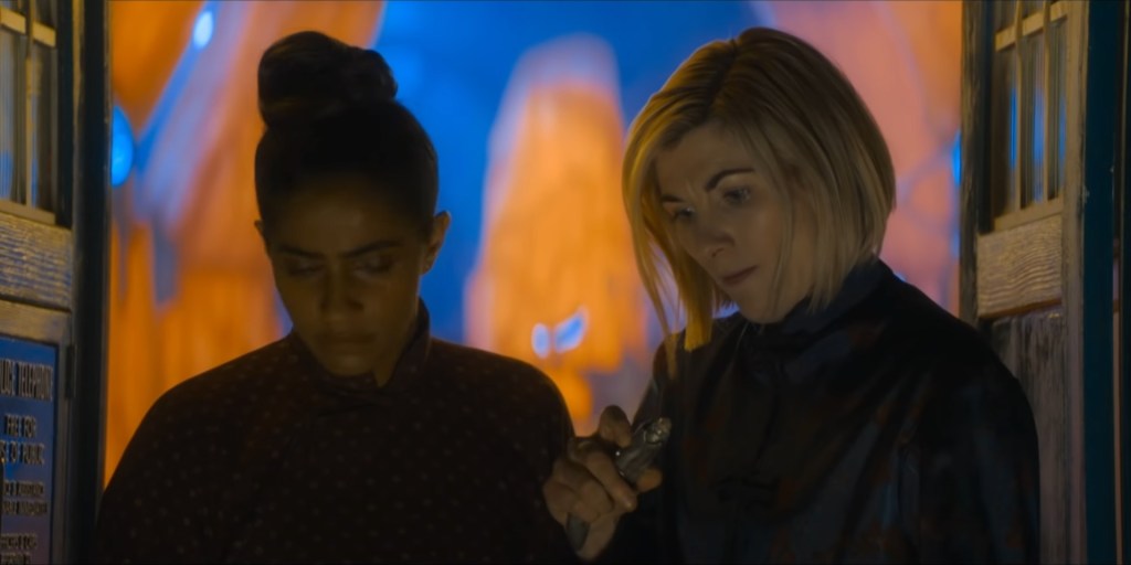 The Doctor deals with Yas’s affection by pretending to look at her sonic screwdriver instead of paying attention… That actually sounds about right for the Thirteenth Doctor, given how she reacted to Brian’s cancer worries a few seasons ago…