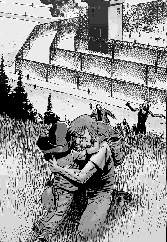 Rick and Carl embrace as the prison burns behind them to end the volume (and the first compendium, for that matter!) It was quite the roller coaster, that’s for sure. Brutal and extremely well drawn too. These two volumes are pretty perfect, if I’m honest.
