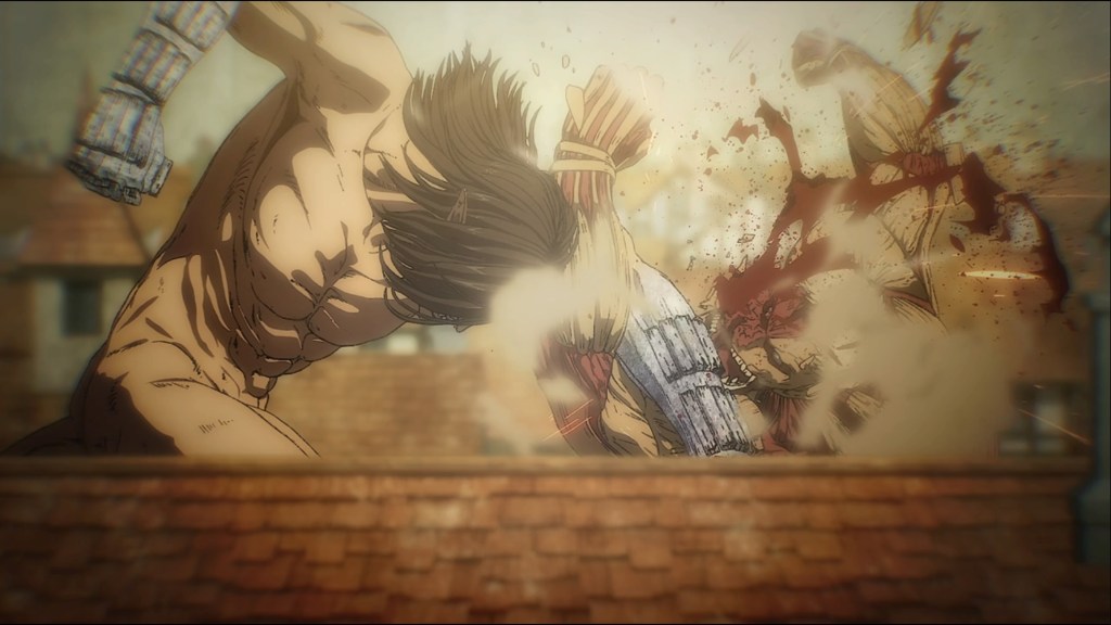 Giant naked blood bath brawls! That’s what Attack on Titan is all about.