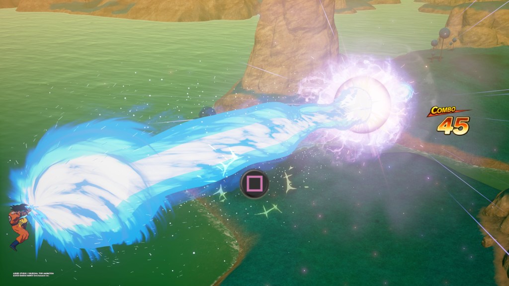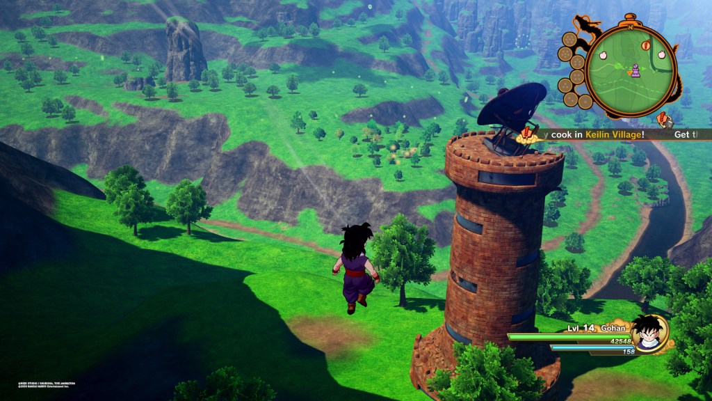 The core of Kakarot is labelled as an “open world RPG”, but beyond increasing skills in a very limited skill tree via levelling up there isn’t a lot of RPG elements. There are a LOT of open world elements though, but I’ll get to those in second because the other key part of the game is the combat; which is not a turn-based thing, it’s not a basic 3D fighter like so many of CyberConnect2’s anime games, instead it’s pretty much just the Xenoverse series again, which in turn was very similar to the Raging Blast, which is turn was very similar to the Budokai Tenkaichi series. So a fresh company getting their hands on the license did not lead to a fresh take on Dragon Ball combat, but hey-ho. So you can move freely in a large 3D space, unlike most games however they never programmed for fighting on the ground so every fight begins with a cutscene talking on the floor and then cuts to everyone oddly hovering above where they were talking… very weird, especially since walking and running on the ground is present in the open world side of things!