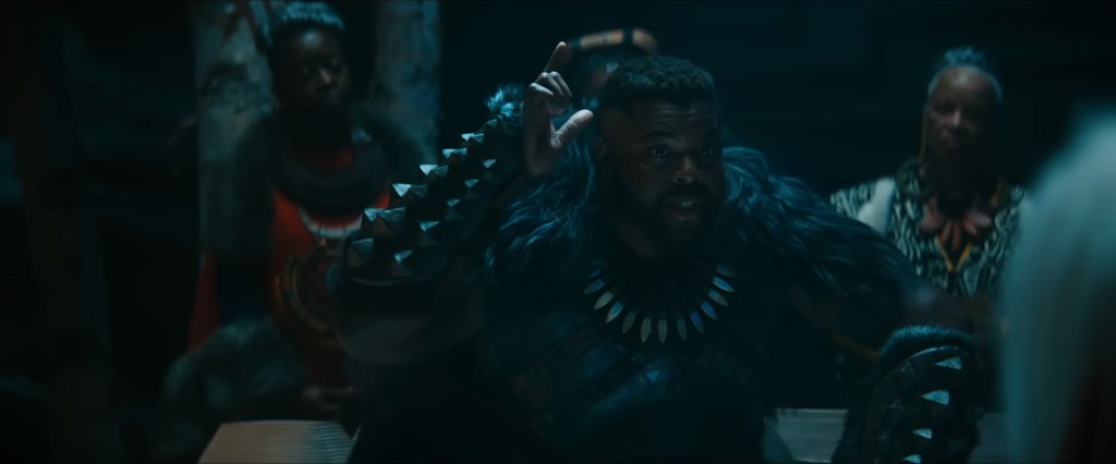 M’Baku raises his hand when someone asks who should be the next Black Panther. Everyone ignores him. Poor M’Baku…