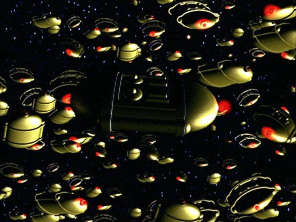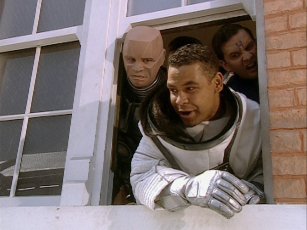 At this point I want to mention the frankly shockingly bad CG that is used throughout the series. Yikes! Even at the time it looked bad, I remember a scene with countless Ace Rimmer caskets floating in space being awkwardly bad looking when it aired, to say it “hasn’t aged well” is an understatement. They should’ve kept to the lovely model work of the previous series…