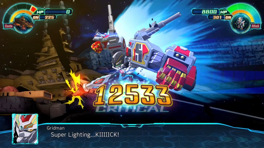 Gridman kicks one of those crap wheeled capital ships from Victory Gundam. Good!