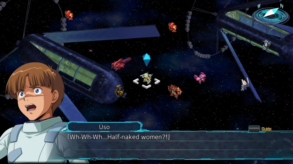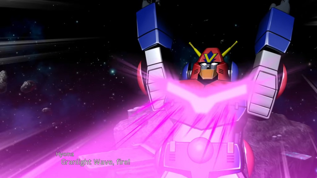 The story follows similar lines to the previous games in that a new ship is created, in this case the Dreisstrager, and a whole bunch of pilots end up on board to take on a major threat to Earth. The pilots include your chosen protagonist (either female Az Sainklaus or male Edge Sainklaus. I went with Az because I went with a male last time, may as well alternate!) as well as pilots from all the series represented, some of whom (or a lot of whom if you have DLC…) are displaced from other universes via “Dimensional Boundary Distortion”, or DBDs for short. The Dreisstrager crew is original sent out to end all war but they soon end up clashing with a group of AI craft called Quaestors. Meanwhile the core plotline of several featured series also play out, including more Dr. Hell and his minions from Mazinger Z, another look at Van’s endless thirst for revenge from GunXSword, the underdog story of Majestic Prince (which I did not like, man that a bunch of unfunny generic character types!), the weird police story full of robo-ninjas and AI from Brave Police J-Decker, a re-run of Magic Knight Rayearth that’s barely different from the last game, the Star Wars-esque story of Heavy Metal L-Gaim, the fun kaiju-smashing story of SSSS.Gridman, the so bad its often funny story of Victory Gundam (but without any killing, which made a hell of a difference to THAT narrative!) and somehow an even more over-the-top insane story from the realms of GaoGaiGar, plus more I’m sure I’m forgetting.