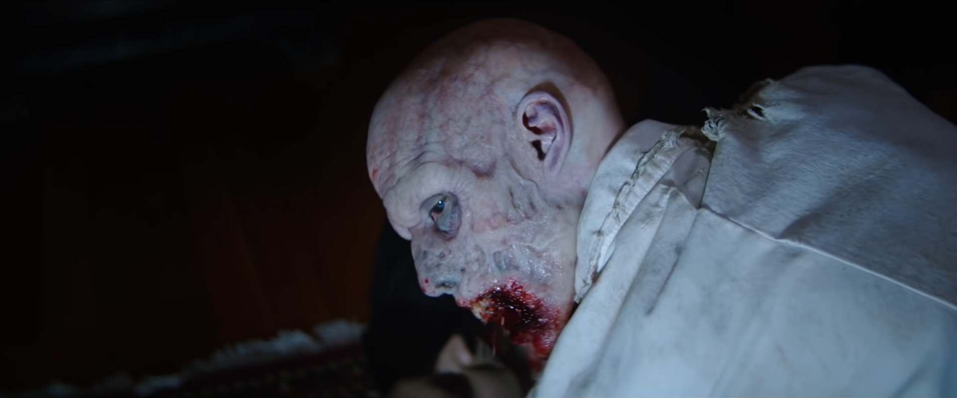 Well, anyway, while the S.T.A.R.S. Alpha team explores Spencer Mansion they find the Bravo team dead and Richard is eaten as well as Brad, which is a change from the games, plus we see a recreation of the Ashford twins film from Code: Veronica, which was a nice nod. Wesker saves Jill from Brad’s crashing helicopter and heads down a secret tunnel, where Chris and Jill soon follow him. On the other side of things the classic truck driver toppling over his fuel truck and it exploding outside of R.P.D. HQ happens (though with extra Leon comedy! … sigh) and Claire soon meets up with Leon, Police Chief Irons (Donal Logue) and reporter Ben Bertolucci (Josh Cruddas), though Ben doesn’t last very long in his cell (via zombie this time, no G Monster here! … yet) so the three of them get out of the soon zombie-infested police station and into the orphanage, where Irons says there’s a secret entrance to an Umbrella lab, confirming Claire’s theories. Lisa Trevor (Marina Mazepa), a poor orphan friend of Claire from her time there who has been horribly experimented on arrives and helps Claire and Leon escape due to their old friendship, even though she’s some sort of twisted monster… though in this timeline, not really? Oh and Irons is killed by a Licker, so that’s that. No creepy taxidermy this time round.