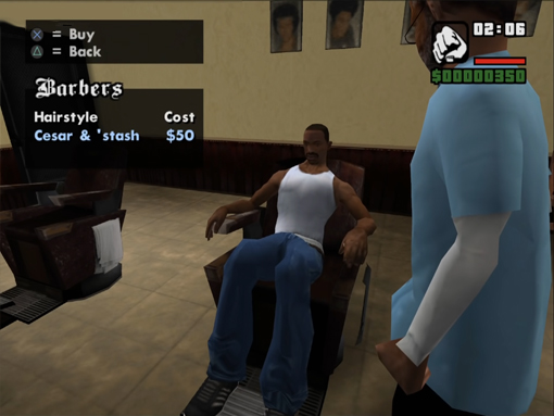 I didn’t have any spoilery pictures, so here’s a picture of CJ getting facial hair somehow razored onto his face instead. (PS2)