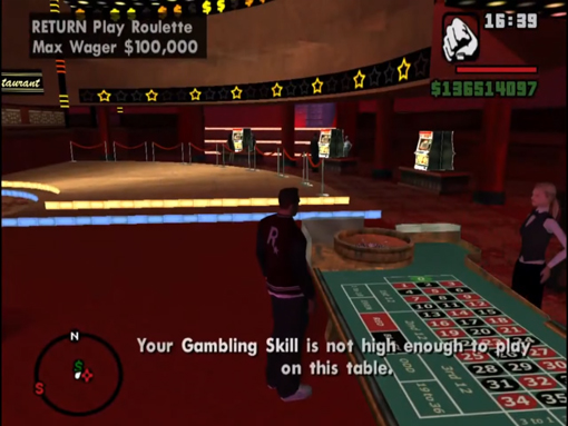 Another major new addition is the “Gang Warfare”, as Los Santos is sectioned into areas controlled by specific gangs and you can initiate a “turf war” by shooting several members of the gang within their own area, and if you survive three waves your Grove Street Gang take the area. You can recruit generic members of your gang (how many depends on your respect stat) to give you a hand as well. It’s fun, but I remember the first time I played it I did a whole bunch of them before finding out part of the main plot is you being kicked out of Los Santos and the Grove Street gang losing all their territory… That was annoying back in the day, thankfully I was still having a great time so having to redo them wasn’t a big deal, but still! Returning from Vice City is the ability to buy property, both houses for you to save in and business that you can make profit from, and although not all of them have a set of missions associated with them, some do. There are a TONNE of places to own, luckily its easy to make money at the betting shops and casinos thanks to the ability to save and then try a risky bet again until you win. Scummy? Yeah, but everyone was doing it, so that makes it okay.