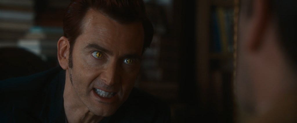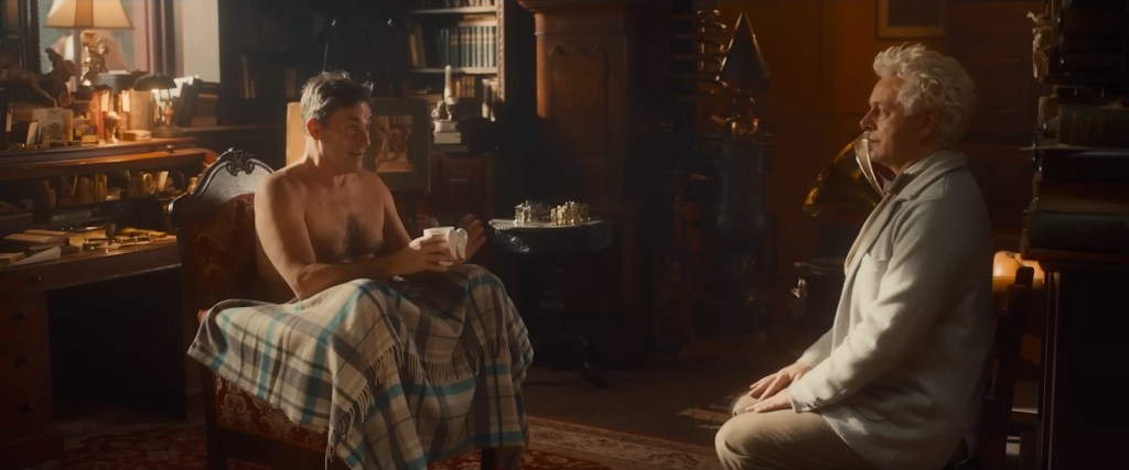 Everything in the season is second place to Sheen and Tennant’s amazing chemistry and in fact the core plot beyond Gabriel and the two shop owners is Aziraphale and Crowley realising they have feelings for each other beyond friendship, oddly something the demon realises first, and due to their acting chops it all works so, so well. That’s not a disservice to the rest of the acting on display either, well with the possible exception of Miranda Richardson’s Shax, whose intentional over-the-top performance doesn’t quite work, something about the tone of her voice just being… off. Still, wasn’t too distracting, and people like Jon Hamm and his naïve child-like human version of Gabriel more than made up for it. I also have to praise Derek Jacobi (as I do often on this site…) as he appears as the Metatron (God’s spokesperson, basically) in the final Episode and does such a pitch-perfect job that he nearly steals the scenes from Sheen and Tennant, and that’s saying something.