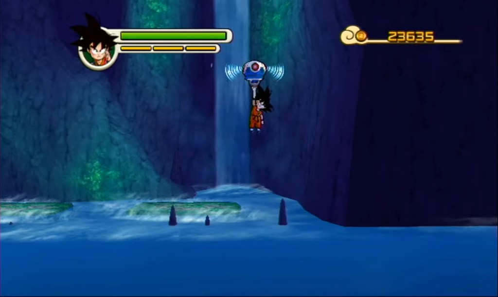 The gameplay follows the same template as Advanced Adventure in that the core gameplay is a simple platformer crossed with a generic beat ‘em up complete with a melee combo and a chargeable Kamehameha as your only options, except this time they’re triggered via the Wiimote and Nunchuk, which is… not very fun in long play periods like so many other motion controlled games, but thankfully you can also switch to a regular control style and use the Wii Pro controller, which is what I did. The platforming would be a bit of a challenge but they put in a Sonic-style auto lock-on thing where you can press a button to head to that specific platform or enemy with a single button prompt, so good if you’re young, pretty dull for me (both then and now) There are mini-bosses and moments where you’re locked onto one screen and have to defeat a certain amount of enemies but in general it’s not super-exciting, and the level design leaves a lot to be desired.