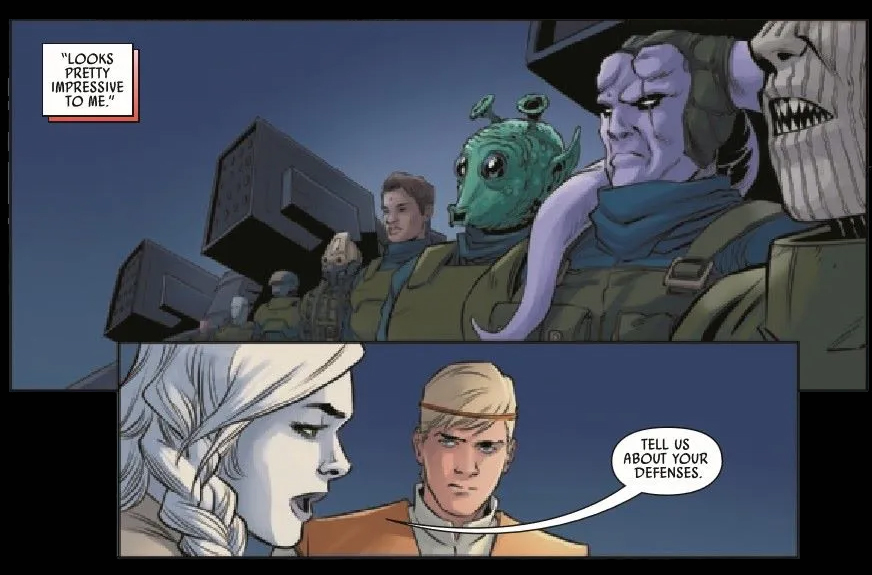 As you’d imagine the story focuses on the titular Blade himself: Porter Engle, but the younger version of him from this time period is paired with another Jedi in Barash Silvain, and we see their relationship unfold in flashbacks across the four issues. They met as younglings at the Jedi Temple and became so close they refered to themselves as brother and sister, true siblings in their own minds. So deep was their bond that they intentionally underperformed when they were assigned to different Jedi as Padawans so they could reunite at the Temple. Eventually the Council gave in and allowed them to act as a pair and since then they’ve been acting as Jedi peacekeepers, travelling across the outer rim trying to help out anyone that needs it.