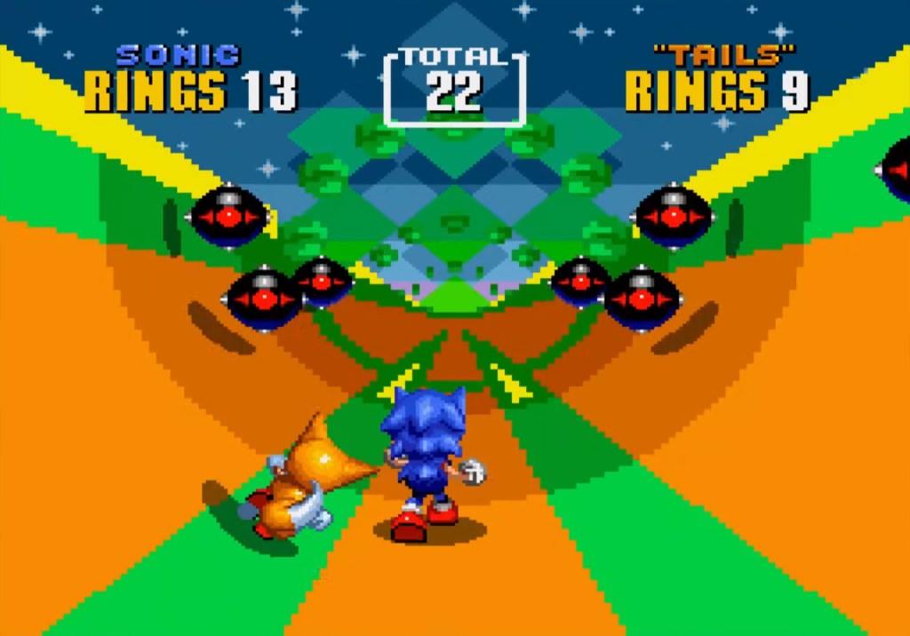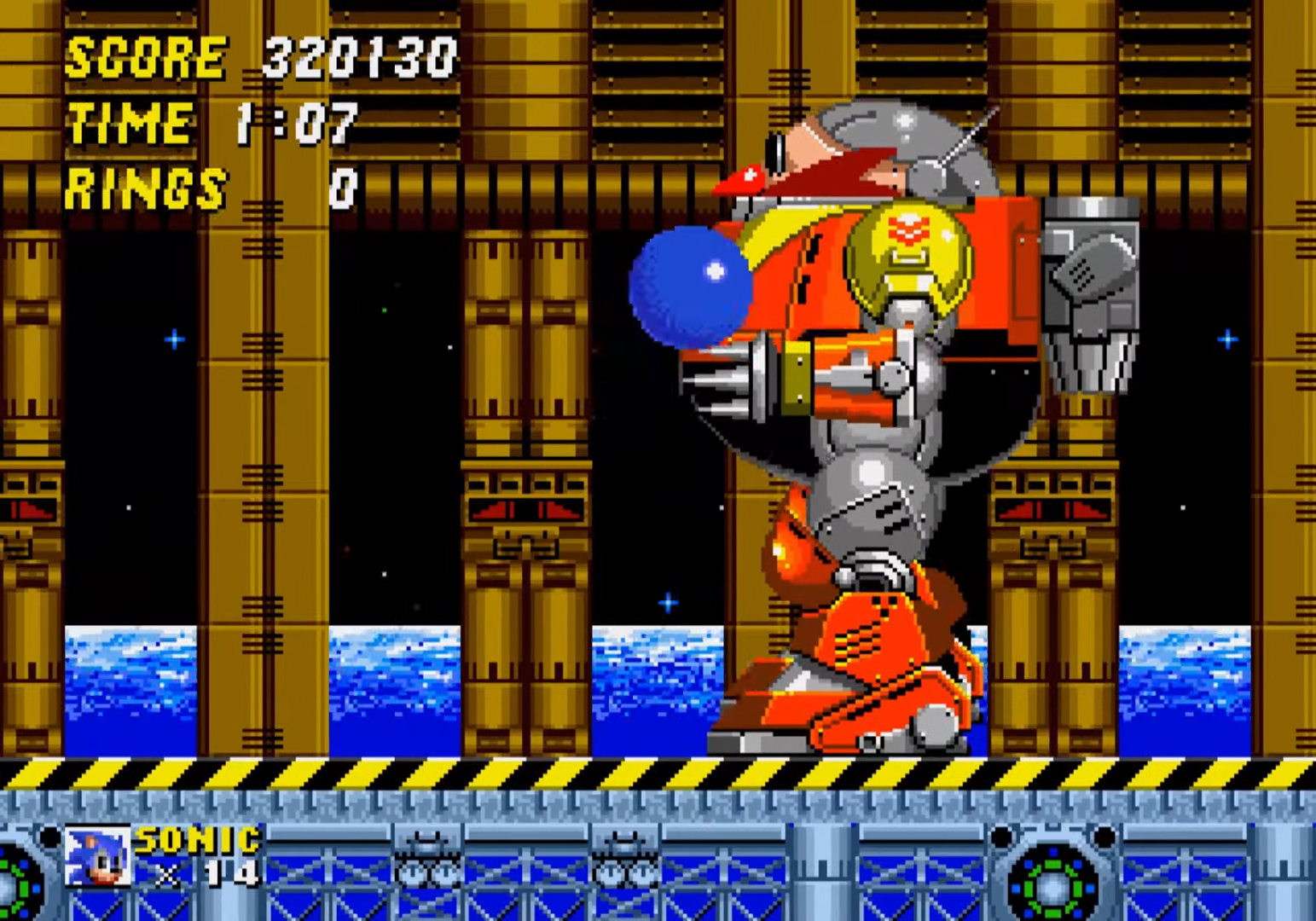 There are 11 Zones split into two Acts each which means less Acts per Zone but much more variety in level design, and what fantastic levels they are! Damn near every one is filled with personality, unique gimmicks, a fun boss fight and an amazing music track. Much like last time you can enter a bonus level, this time if you cross a checkpoint marker with at least 50 rings. Instead of a queasy rotating level from last time it’s a weird behind-character-view mode when you run across a halfpipe collecting rings and dodging bombs. You’re rewarded with a Chaos Emerald at the end and if you do this seven times you get the true ending, complete with Super Sonic, who you can play as if you get all seven emeralds and then collect 50 rings in a level.