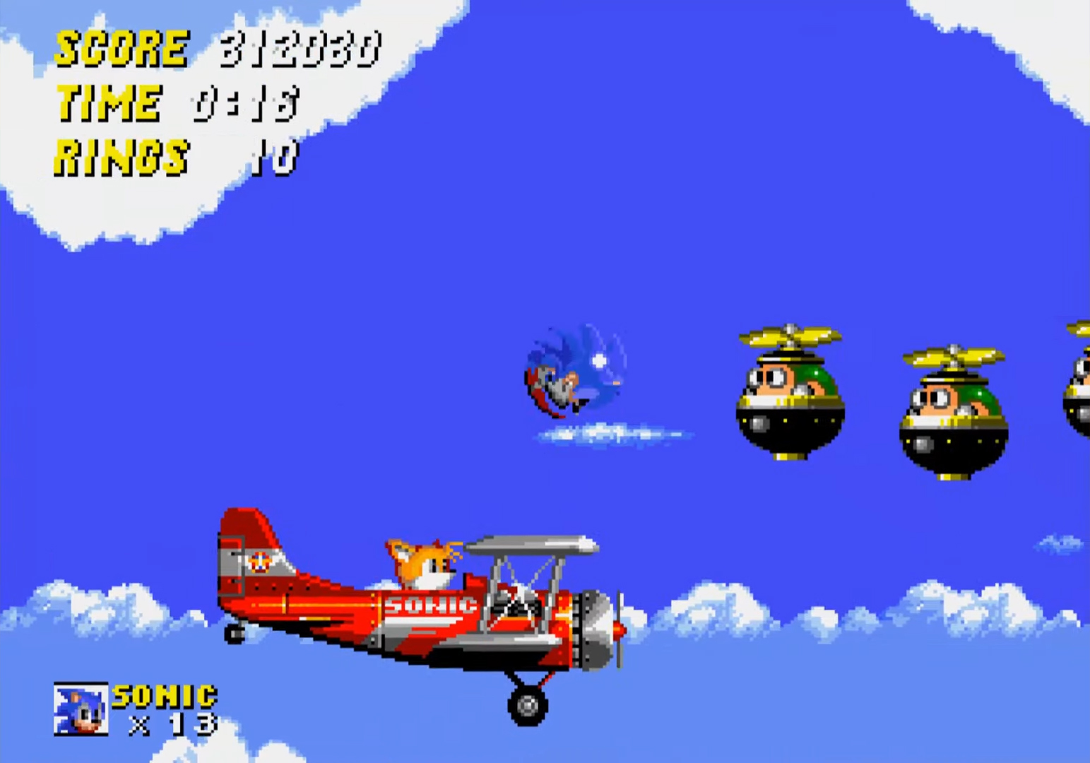 The core gameplay remains the same as Sonic 1 but everything is greatly improved, especially the fact you can now crouch, charge and then spin-dash rather than having to gain momentum and press down like in the original, this was a small thing but so revolutionary for the game series. Beyond that though you run from left to right jumping or spin-dashing through enemies, collect power ups like speed boosts, shields and extra lives and collect rings which act as health: when you get hit you drop all your rings but as long as you can grab at least one ring you’ll be able to take another hit. Still a very original concept for a platformer. The other big change is Tails, who in the default mode of the game follows you around as a (rather stupid) A.I. companion who thankfully doesn’t count towards your hits or lives given how easily he dies all the time. You can choose to play without him and even as Tails without Sonic, complete with a little helicopter hover move.