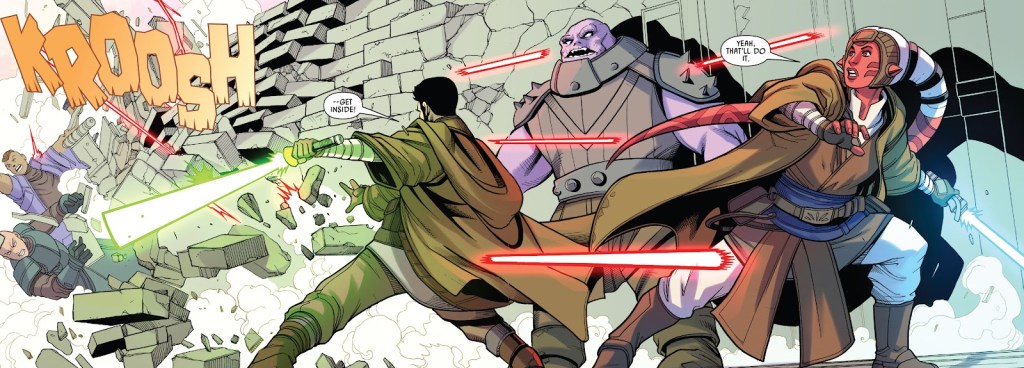 The story is a fun one, mostly because Vildar’s calm sarcastic nature blends well with Sirrek’s hyperactive and quippy nature, making for a fun double act. The art is good as well, and it ties in with both the audio drama “Battle of Jedha” as well as the wider High Republic story arcs really well, too.