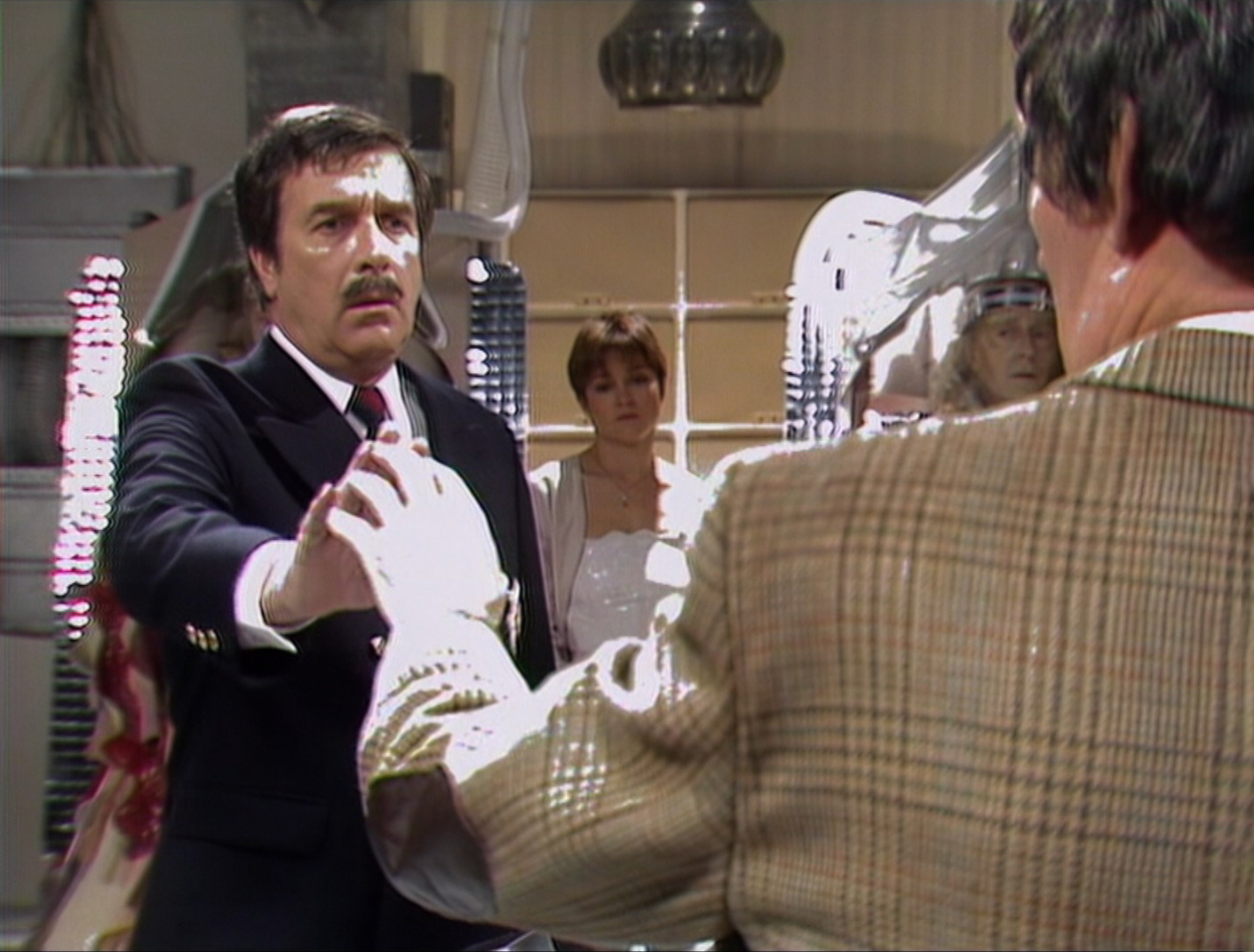 The two Brigadiers touch hands while Tegan couldn’t look any more bored if she tried. It’s only her life on the line after all!