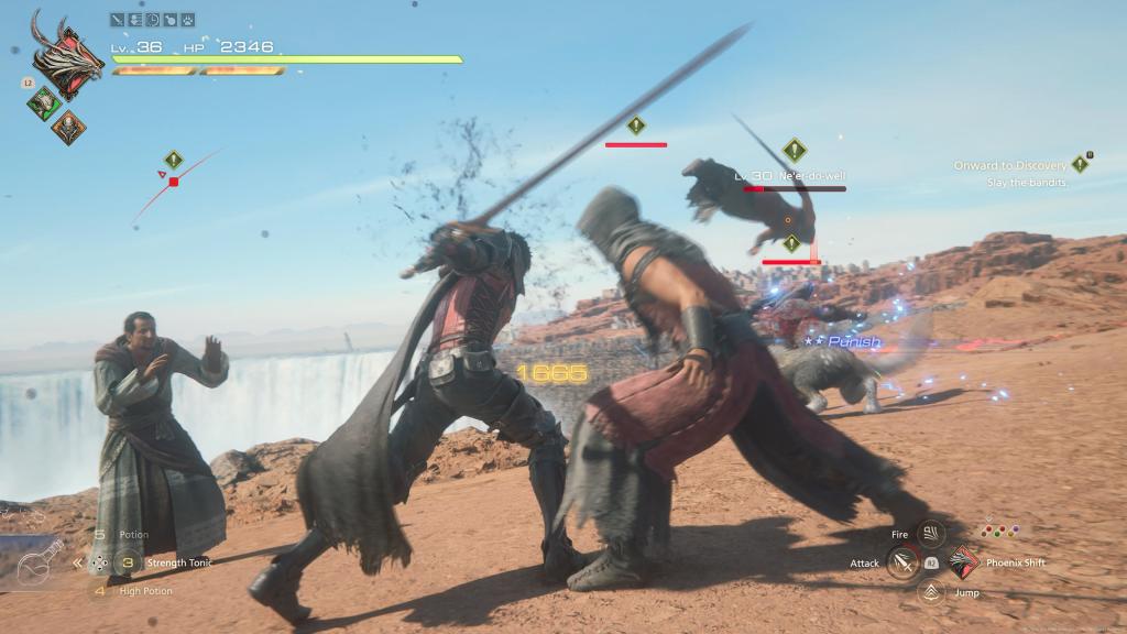 Outside of combat is where I feel the game takes a slight turn for the worse. You have all the classic tropes like buying items and weapons from shops, plus an upgrade system for weapons and armour, but with the exception of the final sword or two you literally upgrade your sword to the next one with material you gained from the previous boss, meaning your sword and armour essentially levels up with you so long as you remember to visit the blacksmith at your hub area as you’ll always have enough materials. Side Quests are a drag a lot of the time, a few of them have really interesting characters and plot where I actively looked forward to seeing the green tick the right area of the map, but a lot of them were “I’m making a potion and need these specific plants, can get some for me?” and instead of saying “I’m in charge of a large force of rebels I’ll send one of my men who is already going to that area” Clive of course just says yes and does everything personally. When I thought I was in the final mission I actually ended up back at the hideout and suddenly 10-15 new Side Quests popped up which took me by surprise, not to get too spoilery outside of the right area of this review but the fate of the world was on the line and several characters mentioned how delaying the attack would allow the main enemy to gather strength so it felt very odd to instead stop and dick around searching for flowers and having a good old chat instead of trying to save the world…