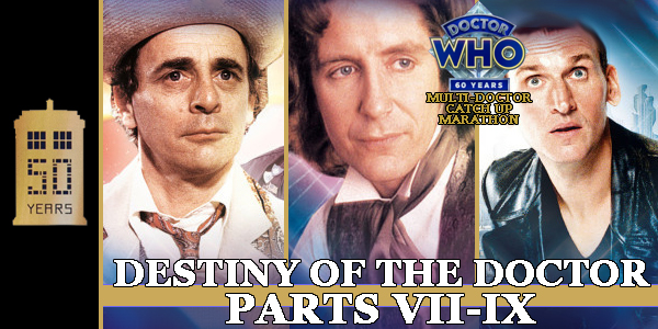 The next three stories in the Destiny of the Doctor run closes the “classic” era and brings us into the “NuWho” era (though it’s really all just one show, but you know…) as well as dropping us in on the Eighth Doctor and Charley, allowing Big Finish continuity a go round. This time I felt all three stories were enjoyable and invoked the spirit of their respective eras and Doctors, though the Ninth Doctor story suffers from being the only one not to feature a returning companion to narrate the story. Let’s take a look!