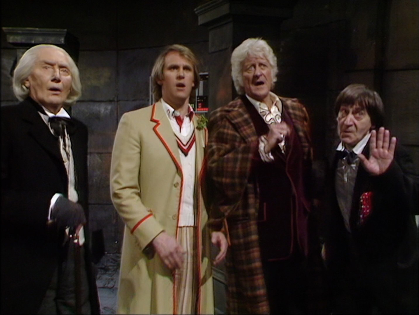 So all paths lead to the tower (well, apart from the Fifth Doctor, but he does rejoin the main plot eventually…) so I’ll get to the finale in the spoiler section. As I said it’s good fun, especially for long-time fans like myself, but really it’s “characters get put in a place and all head to the same location where the villain is unmasked and defeated” and that’s it. Very little depth. Well, this is where Rassilon finally makes an appearance after being the lauded Time Lord legend in a few previous stories, so that’s something, but we all know we watch it because of all the Doctors on screen and the fun cameos, and for that reason it still does its job well!