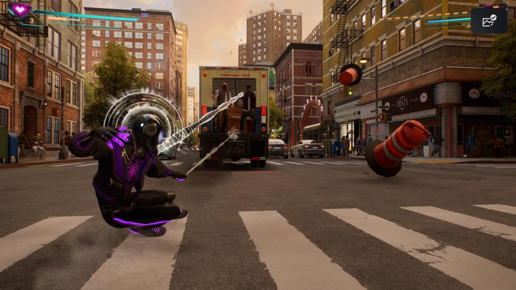 The gameplay is once again an open world action adventure game, with the ability to freely web-swing around a now larger and even more accurate New York and stop criminals with some enjoyable combat while doing story missions and side quests. I guess I may as well start with the movement as now not only can you web-swing but you can also glide using the classic wing gliders and pick up speed with some Superman 64-style floating rings (sorry, the chance to compare the two games on the literal opposite end of the quality game spectrum was too hard to resist), otherwise you can run on the ground and vertically up the side of buildings, as well as use special launch pads to get really high up into the sky. I can’t quite explain just how fun traversal is, except maybe by saying at no point did I ever use fast travel, even if I was just going to a side quest that was on the other side of the city I went there by web-sing/gliding because it was so much fun. Plus this time you can control both Spider-Men, switching between them via a phone app menu much like GTA V but thanks to the PS5’s processing power its just instantaneous, just like the game as a whole: not a single loading screen in sight despite the size and detail of the city. There’s a mission involving a stolen magic item from Dr. Strange’s house that uses portals and they were just showing off at that point, having you jump through a portal to another part of the city instantly. Crazy.