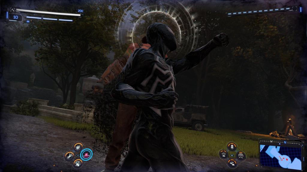 Miles is captured by Kraven and forced to fight Mr. Negative but manages to become a proper Spider-Man and realise there’s no glory in killing for revenge just in time to free his foe from Kraven and ask him to get the other Spider-Man, which he does. The still symbiote-controlled Spider-Man arrives and beats Kraven but is stopped from killing him by Miles, which leads to the two Spider-Men to fight each other. Miles manages to get through to Peter, who removes the suit and captures it. He realises its too dangerous to keep around so goes to Dr. Connors (who had another Lizard moment earlier in the story thanks to Kraven) to get it destroyed but all this does is allow Harry to take it and put it on, the symbiote becoming fully sentient and thus the Spider-Man game-universe’s version of Venom is born. Venom (as controlled by you!) goes on a rampage, including giving Kraven what he wants by killing him in a duel, and then begins to spread his seed across New York, turning innocent people into symbiote creatures and generally covering the environment in black webbing.