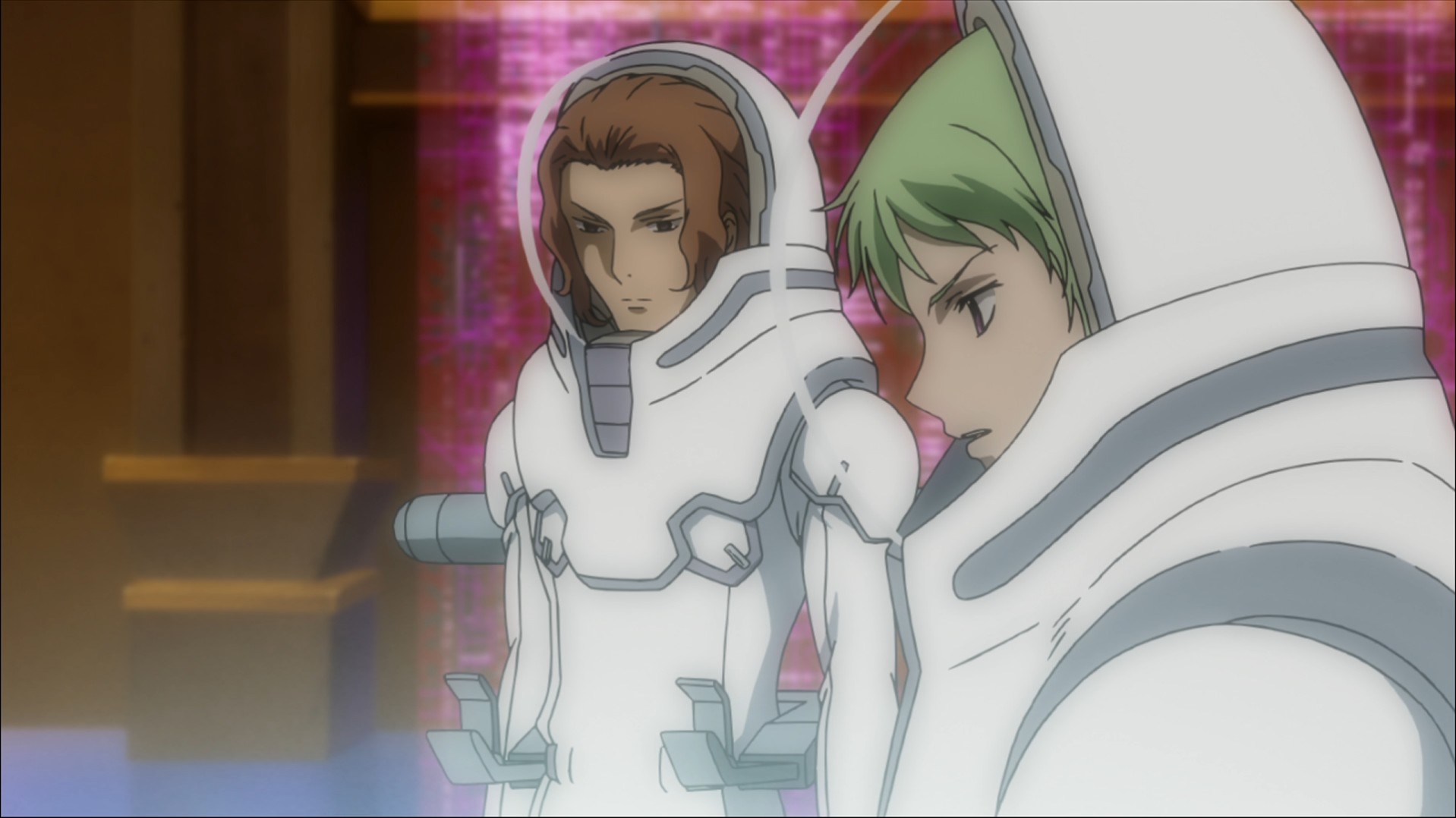 As a final parting gift one of the Trinitys reveals Setsuna as a former child soldier of the KPSA, the same group that was responsible for killing Lockon’s family a few years ago. Lockon confronts Setsuna and even points a gun at the former Soran Ibrahim but Setsuna manages to convince him that he is a changed person and a force for good. He also explains who Ali Al-Saachez is and how he led the KPSA, which gives Lockon a new target to focus his revenge on. Behind the scenes though things take a massive turn for the worst as 30 GN Drives are dispersed across all three major powers, who then decide to form a single army under the control of the UN specifically to take out Celestial Being and the Gundams. As the Trinitys are forced to retreat in the face of the new “GN-X” machines Alejandro Corner and his assistant Ribbons head to the supercomputer core where Veda, the advanced AI that Celestial Being use to help with their “tactical forecasting”, is held and Ribbons begins to hack it…