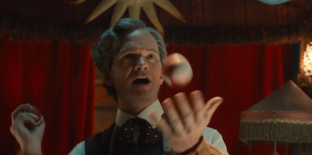 We’re introduced to the new UNIT team of previously seen scientific advisor Shirley Bingham (Ruth Madeley), an unexplained robot called “The Vlinx” (voiced by Nicholas Briggs) and Mel (Bonnie Langford) of all people, who apparently returned from her travels in space to 2020s Earth and became a member of UNIT. Well, alright then I guess! The team suss out that the signal driving people mad (a recording of a giggle) has been implanted in all screens since the beginning of television so The Doctor and Donna head back to that exact time and meet The Toymaker face-to-face. I have to say that I’m not sure how to take Neil Patrick Harris’ Toymaker, the weird over-the-top stereotypical accents, the weird love of dancing, and 90s pop music dance sequence (yeah, that was a thing later in the episode…) it’s over-the-top and campy and he pulls it off flawlessly but I’m not sure the Toymaker needed the RTD Master makeover. Well, either way The Doctor and Donna get pulled into the Toymaker’s domain and have to deal with endless corridors, spooky dolls and a puppet performance where Russell T. Davies seemingly wanted to rag on how Steven Moffat wrote out all of his companions (Seriously, Amy, Clara and Bill’s fates of “not killed off but may as well be” were pointed out one by one and ended with a “oh well that’s alright then!” every time The Doctor tried to defend their fates. Very odd! … Very funny though!) Oh and apparently the Toymaker defeated The Master and imprisoned him within his gold tooth…?
