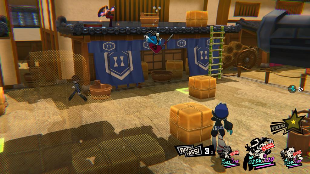 Really though cover is the main mechanic in the game, if you leave any of your character standing in the open rather than behind cover you’re going to have a rough time but each stage is well designed enough that its often easy to place them in cover pretty much every turn. On that note each stage is well designed, to be fair, a good variety of enemy types from ranged shooters to big brute melee enemies, to enemies that block frontal attacks meaning you have to find a way to get behind them and enemies that cause you to swap places with them, meaning attacking one that’s not in cover is a risky move; all on stages full of cover, lifts and high ground, it may have been easy but it was never boring. Well, apart from the last “Kingdom”, as it contained mostly reused bosses, but hey-ho. On that note much like the Palaces in the other P5 games there are several Kingdoms in this, each with their own boss and unique looking enemies (that admittedly all function the same) and you get main missions and side quests, though in this case the side quests are just “Missions” comprised of a single stage, normally with a more puzzle-y feel to it, with goals like “defeat all enemies in one turn”, so you have to make use of all the mechanics. These were normally the only real challenging parts of the game, and the only place I saw the “Game Over” screen… a couple of times.