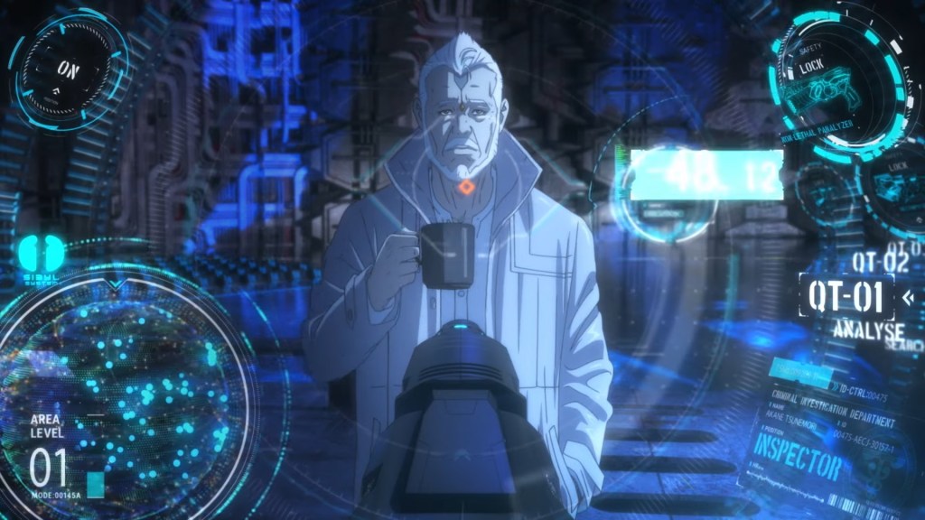The film opens up with a large tanker being assaulted by a group known as the “Peacebreakers”, specifically a lady called Professor Stronskaya being found and killed by a Peacebreaker called Kai after she refused to give up her research into the Sibyl System. Kogami, now in his new role of agent for the Ministry of Foreign Affairs, is dropped down onto the ship and takes a few Peacebreakers out but they manage to escape. We then cut to Akane debating the ethical application of the Sibyl System as it grows in popularity abroad, a meeting that Stronskaya was supposed to attend and in fact after the meeting ends both Akane and head of Immigration Atsushi Shindo get messages about the tanker assault. The whole area is cordoned off and they’re both told that it’s an MFA crime scene and they’re not to interfere, but Akane soon finds out that her and Togami’s old friend/mentor Joji Saiga was sent a message by Stronskaya moments before her death.