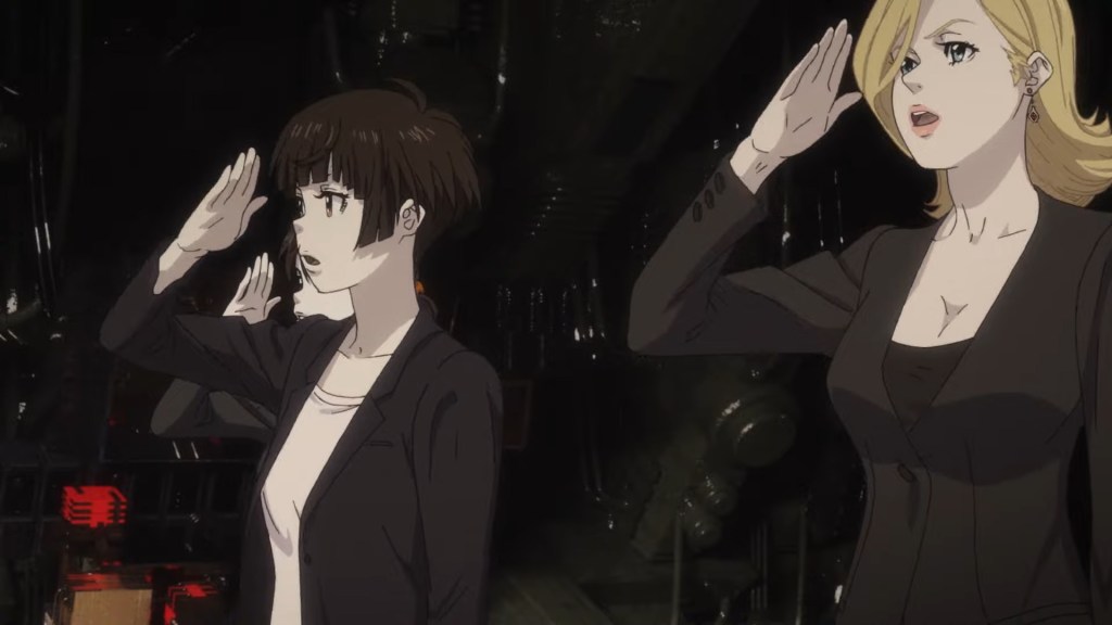 With the case closed Ginoza and Teppei transfer to the MFA to be agents like Togami (again, finally getting us caught up to where they are in PP3) and Akane is promoted to a senior role in the Ministry of Welfare but she no longer believes the Sibyl System can be trusted to run by itself without human assistance so at her inauguration ceremony she guns down the Sibyl avatar Chief Kasei in broad daylight and shows that she can’t be attacked by the Dominators due to her low crime coefficient, thus showing the world that there are still flaws in the Sibyl System and halting its international rollout, plus landing herself in prison for good measure, finally explaining that whole thing from the third series. The movie ends with Kogami promising to break Akane out somehow, which given he hasn’t by the time of Psycho-Pass 3 I guess that’s proven harder than he’d thought!