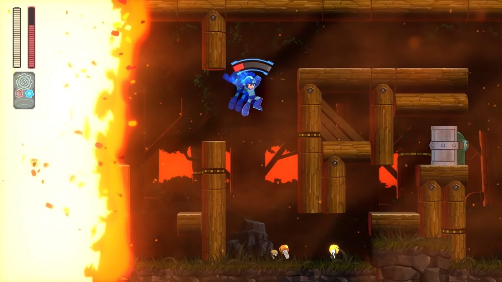 The big key gameplay change here is the Double Gear system, which allows you to either slow down time or make your shots extra powerful, but with the risk of using all your gear energy and needing to wait for it to recharge. If you’re low on health you can use a Double Gear attack, slowing down time and doing an extra powerful shot, but it does leave you exposed afterwards. It’s an excellent mechanic honestly, and how the slowing down time mechanic is used in a lot of the level and enemy design is great fun. While as you’ll see below this is far from my favourite Mega Man visually or audibly it might well be the most fun to actually play.