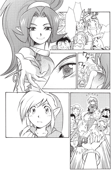 Link is picked out of a crowd. To be fair wearing bright green clothes with those ears does make you stand out…
