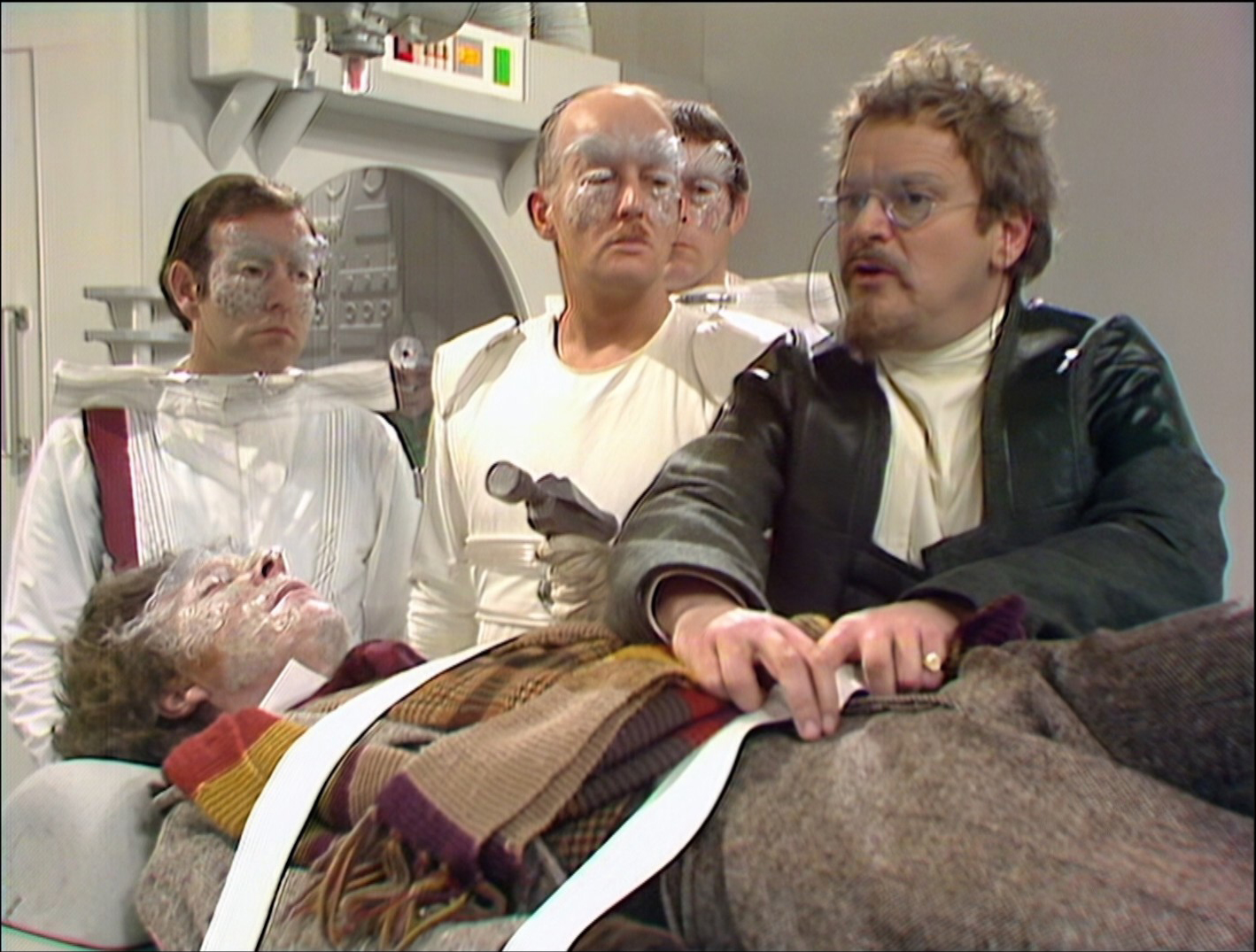 Back in the Bi-Al Foundation Marius reveals he intends to return to Earth and as K9 is too heavy for the weight requirements he asks if The Doctor would “adopt him”, which he agrees to, much to Leela and K9’s joy. It’s classic Doctor Who corridor running for the most part, and the combined with the previously mentioned Nucleus’ costume problem doesn’t lead to great fun.