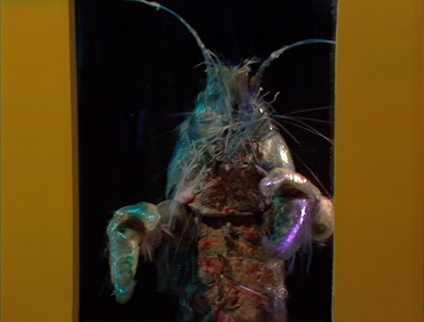 As the cloned Doctor and Leela walk around the former’s brain Lowe and his infected army eventually manage to swarm the lab and while K9 and Leela are busy elsewhere infect Dr. Marius and force him to clone, shrink and inject Lowe into The Doctor’s brain as well. As The Doctor confronts the Nucleus (also voiced by John Leeson) it claims the right to live and spread like any other lifeform after floating dormant in space for millennia. As Clone Lowe arrives and is killed by The Doctor’s antibodies (that look an awful lot like white balloons) the Nucleus is extracted via the tear ducts and Real Lowe uses the machinery to enlarge it to roughly human size and command its converted drones up close…