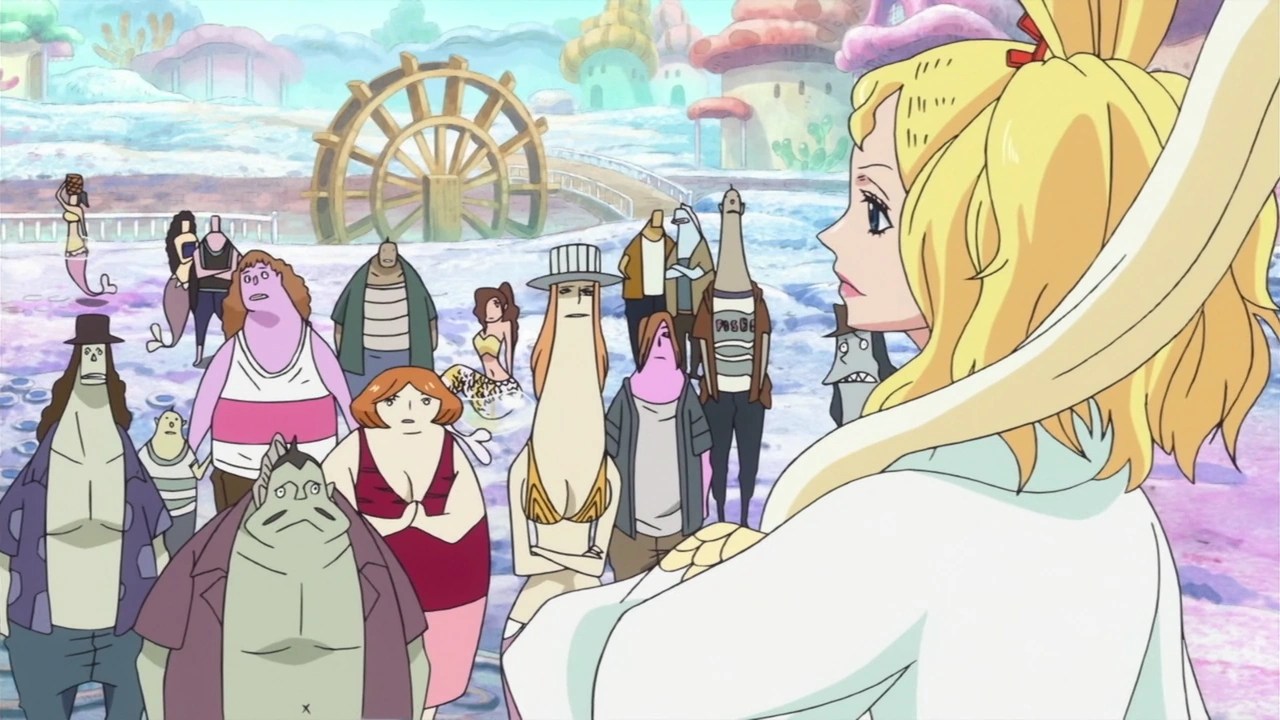 Otohime giving a speech to the frankly weird looking residents of Fishman Island… especially the ones in the back with no face, curse them!