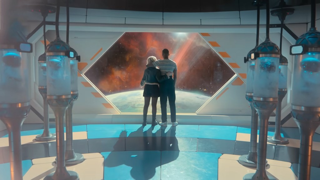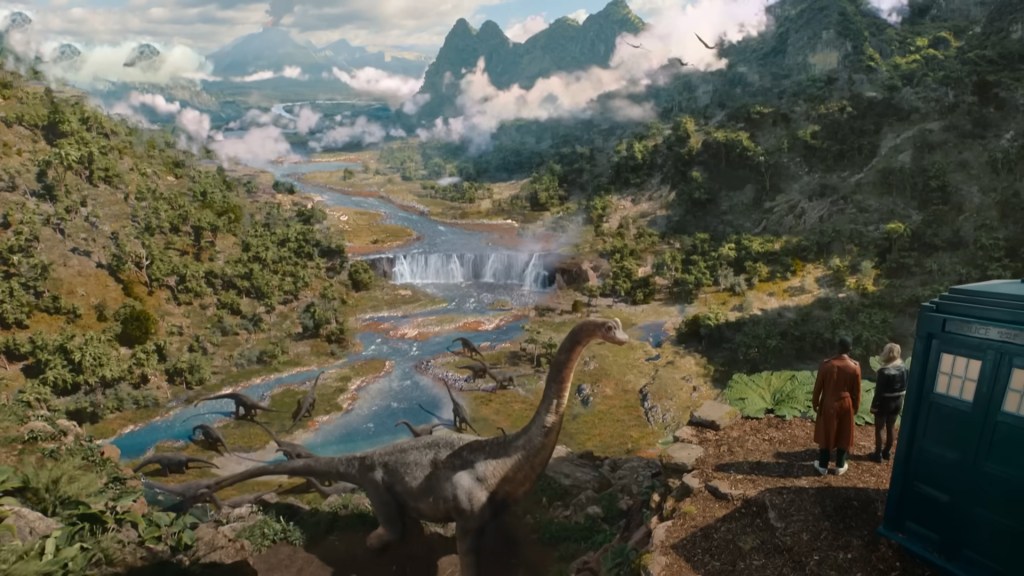 The story opens with a “this is what Doctor Who is all about, potential new viewers!” scene where The Doctor (Ncuti Gatwa) and his new companion Ruby Sunday (Millie Gibson) take a quick spin to the time of the dinosaurs, where Ruby steps on a butterfly and becomes a weird lizard person before The Doctor somehow brings the butterfly back to life and everything’s okay again…? Okay, so that’s not what Who’s all about, new viewers, but hey-ho. They then do the opposite and jump to the far future and arrive on a “Baby Farm”, a space station literally used to grow children for struggling populations or to help colonise new worlds. There’s an interesting analogy on abortion here, with the babies left on board because it was illegal to shut the machines down but that left the children to grow up abandoned, but sadly it was lost almost immediately due to the horribleness that was to come. You see, the babies’ minds grew up but their bodies didn’t and the way the special effects team decided to do it is use actual babies but CGI their mouths to talk. Not only was this creepy to begin with but the fact that the babies were often looking away in the wrong direction or looking upset when the dialogue being spoken was supposed to be happy meant it just failed spectacularly. Creepy at best, laughably bad at worse.