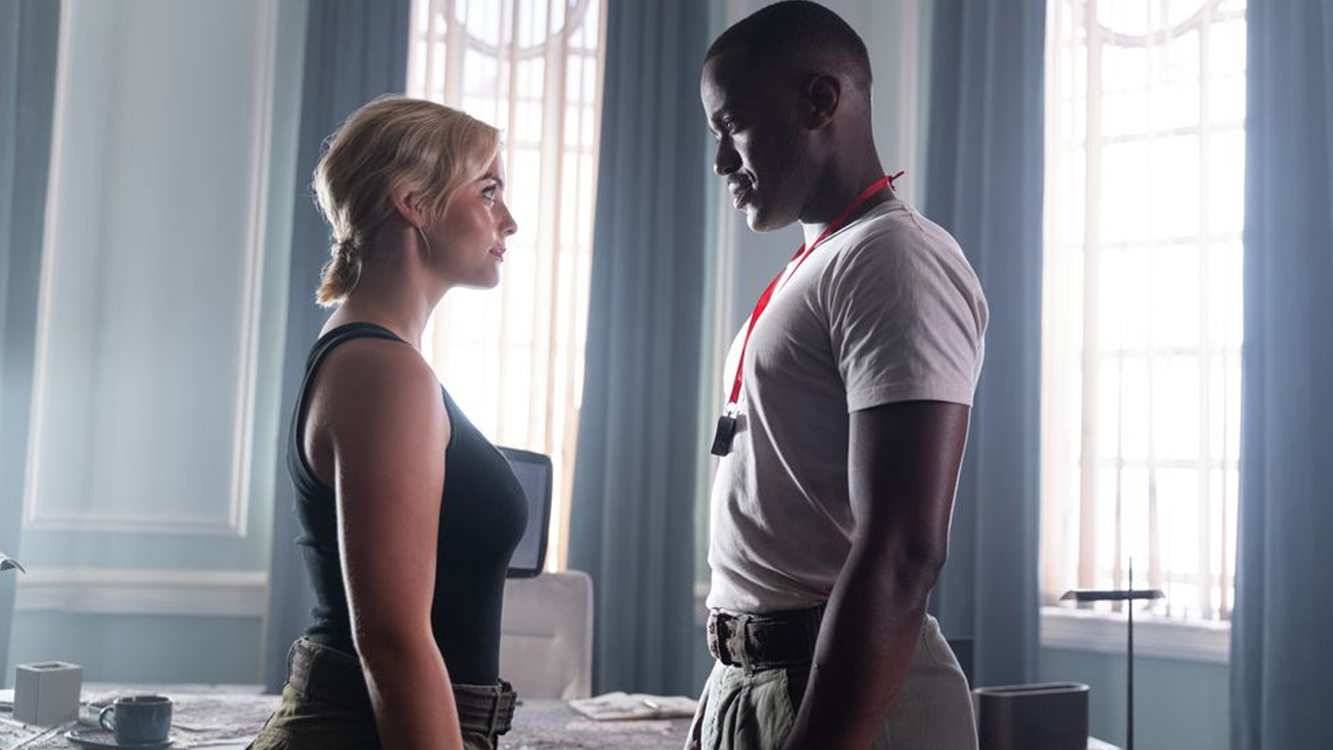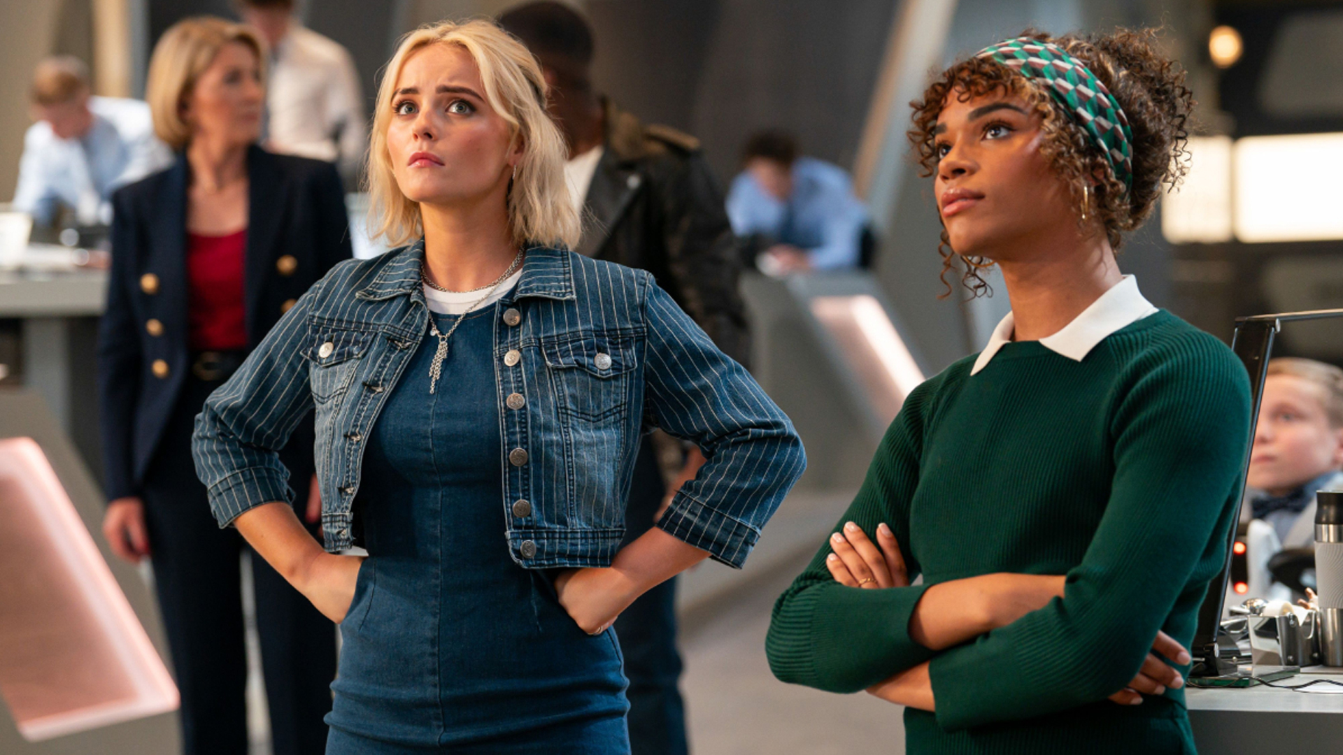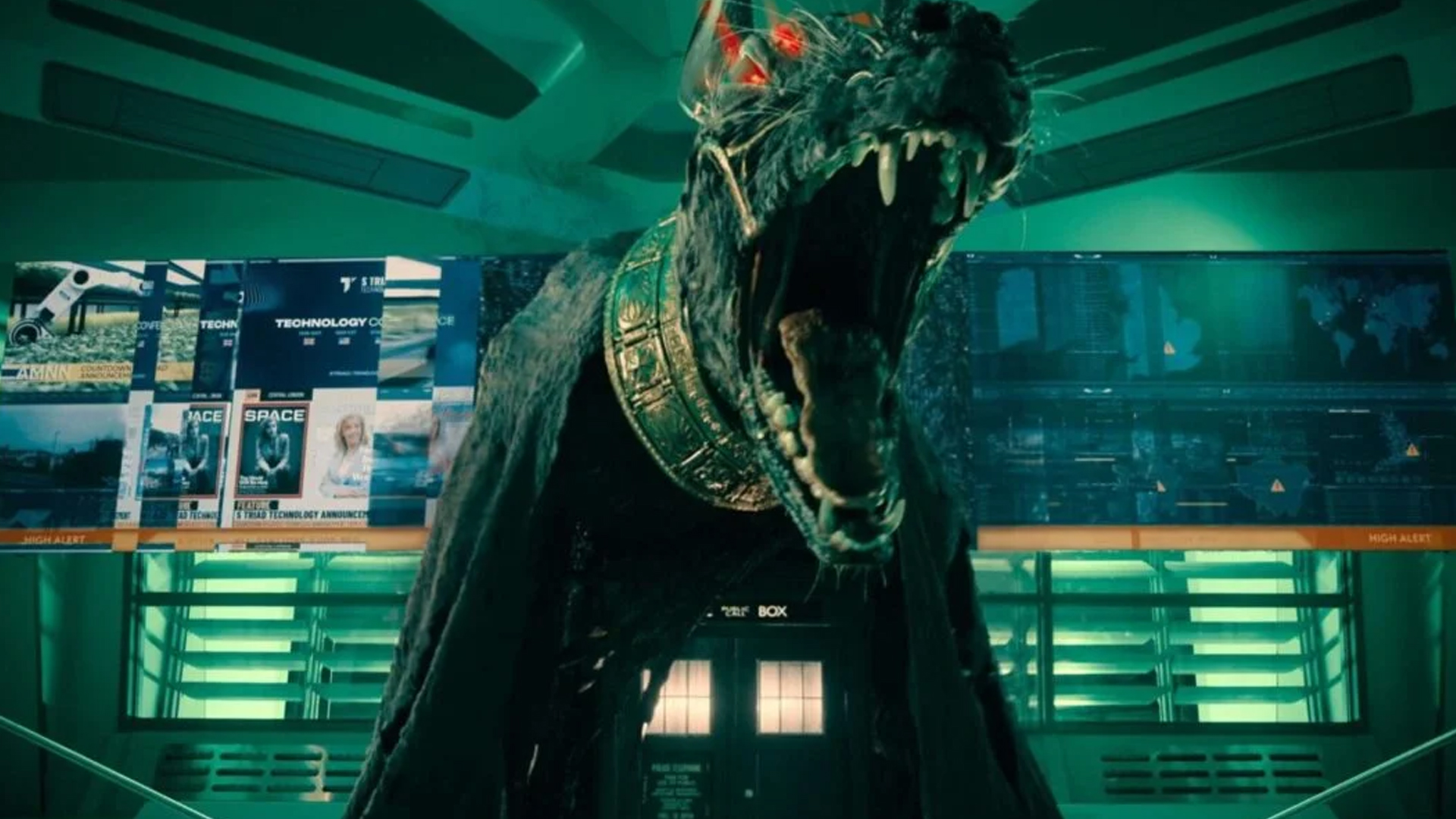The Doctor (Ncuti Gatwa) and Ruby (Millie Gibson) arrive at UNIT HQ to ask their help in finding the mysterious woman who they’ve seen in one form or another across their adventures and see if it ties back to the mystery of Ruby’s birth and how it snows in real life whenever Ruby thinks about it. Kate Stewart (Jemma Redgrave) and team agree to help, especially when the mysterious woman not only exists in this time period but is a woman called Susan Triad (Susan Twist) who is a major tech mogul who is on the verge of a major announcement about giving away free technology. It’s pointed out that “S. Triad Technologies” is an anagram for “TARDIS Technologies” and that using Susan on top of that means it’s almost certainly a trap, though the thought that it might be his granddaughter hasn’t escaped The Doctor’s mind. One mystery at a time though and The Doctor and Ruby retrieve a VHS security tape from Ruby Road on the day Ruby was left behind and use a massive “time window” to digitally recreate the scene and try and get a look at Ruby’s mum as she walked away, but not only is her face blocked by darkness but she seems to point ominously at The Doctor.