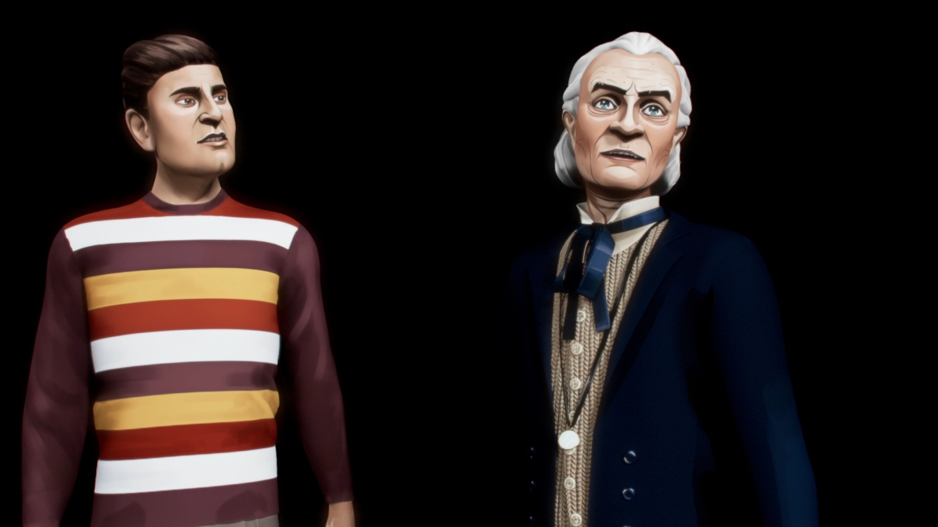 As for the animated episodes? Well, like I said I really don’t like the style. I will at least give them credit that they’re not constantly moving and nodding like the Web of Fear episode from a few years back, and some of the fancy camera angles and effects for some of the games jazzed them up a bit, but overall the likenesses were… weird, the lip movements and facial reactions were off and just generally it wasn’t visually appealing. There were also some weird decisions, like they made the playing card people look like they were walking and talking cardboard people but kept in the line where Dodo had to touch them to confirm they were real people, despite the fact that visually in this version it should’ve been obvious they definitely weren’t, though apparently they were? Strange…