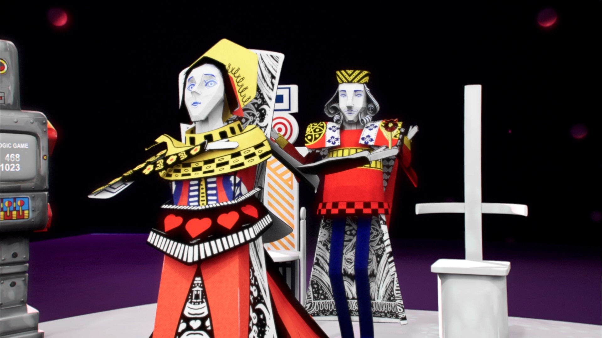 The weird playing card people that are apparently human if you touch their clearly cardboard faces.