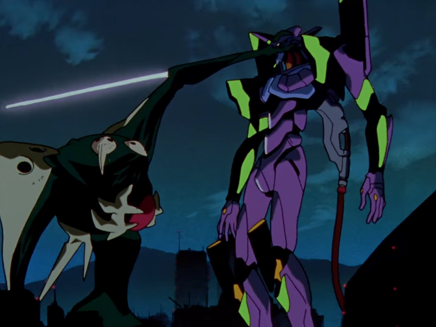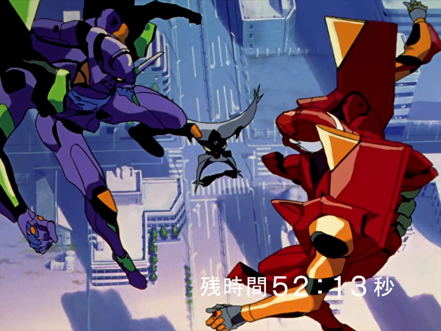Our next episode certainly gets things moving as not only are we introduced to Asuka, an EVA pilot from NERV’s German HQ complete with her own machine, but we’re also introduced to Ryoji Kaji, Misato’s old lover. While Shinji and Asuka team up to take on another Angel (which is awkward as Shinji finds Asuka’s overbearing and loud nature to be off-putting) and manage to take it down we see Kaji deliver Gendo an Angel they call “Adam”. Episode 9 is a classic, it involves an Angel appearing that splits in two and both halves have to be destroyed at exactly the same time, leading to Shinji and Asuka, the latter of which moved in with Shinji and Misato, having to spend a lot of time together despite not getting along. In the end they learn a strict routine that more like a dance to take out the Angel in an all-time classic sequence. It’s followed by a more standard episode that sees Asuka try to study a dormant Angel in a volcano only to have to fight it under-lava, with her having to be saved by Shinji, much to her distress.