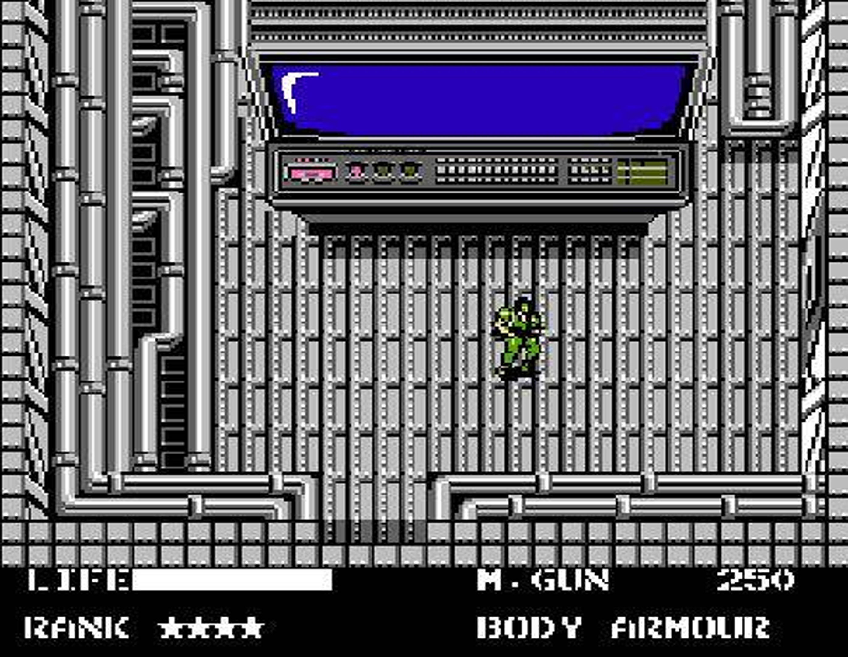 The game takes a top-down 2D perspective segmented into loads of small square screens (think the original Legend of Zelda) where you control Solid Snake as he infiltrates the military base known as Outer Heaven. While you can pick up a gun and start shooting the enemy officers this isn’t a good idea because as mentioned this game pioneered the idea of stealth. If make a loud noise, get spotted by a camera, trip an inferred alarm switch etc. then an alarm rings out and soldiers start pouring into your location and you either have to kill all of the enemies or escape outside of the entire building or head into a lift. The only exception to this is if you’re only spotted by a regular enemy on a normal screen, then all you have to do is move to the next screen and you’re fine. There are ways to deal with enemies quietly though, you can sneak up behind them and punch them until they, um, vanish or shoot them with a silenced pistol, though the suppressor item does have a meter that wears out so you don’t over-use it. Basically the best course of action is to just avoid combat and sneak around guards and underneath cameras as much as possible.