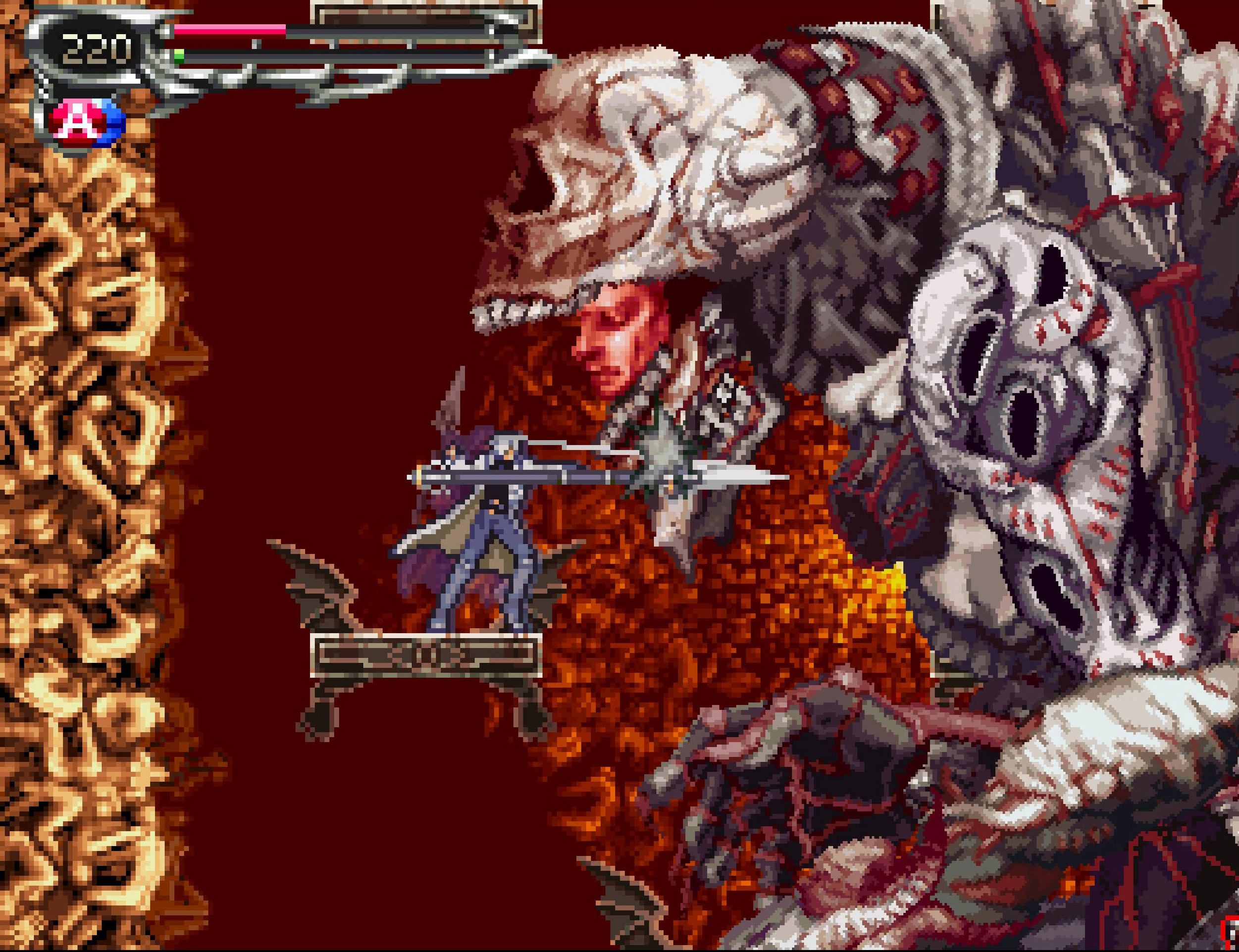 Sadly we now get to the negative part of the game: touch screen usage! Yes, this was the first Castlevania game on the DS so of course they went all in on the touch screen gimmicks, the worse offender being the Magic Seal System, where you have to draw a specific pattern on the screen to “seal” the bosses after defeating them. On the DS I can’t tell you frustrating it was, I can only imagine how bad it got towards the end where the seals get a lot more complicated to draw and you inevitably die to bosses you’ve technically already defeated because you failed to “seal them” properly. What a silly mechanic in retrospect, and at the time honestly. Thankfully the only real difference between the DS original and me playing it on the PS5 now is that for sealing you just have to press a combination of buttons in the right order, still occasionally annoying but far, far easier and therefore far less likely to have to redo the last moment of a difficult boss fight just because you slipped with your stylus a bit. There are other bits too, like ice blocks you have to clear by rubbing them off the screen but that was never done under pressure or anything, and it’s oddly perfectly recreated via the PS5’s touchpad, which is a part of the controller I’d never used for anything other than pressing it to open a select menu before but is surprisingly accurate.