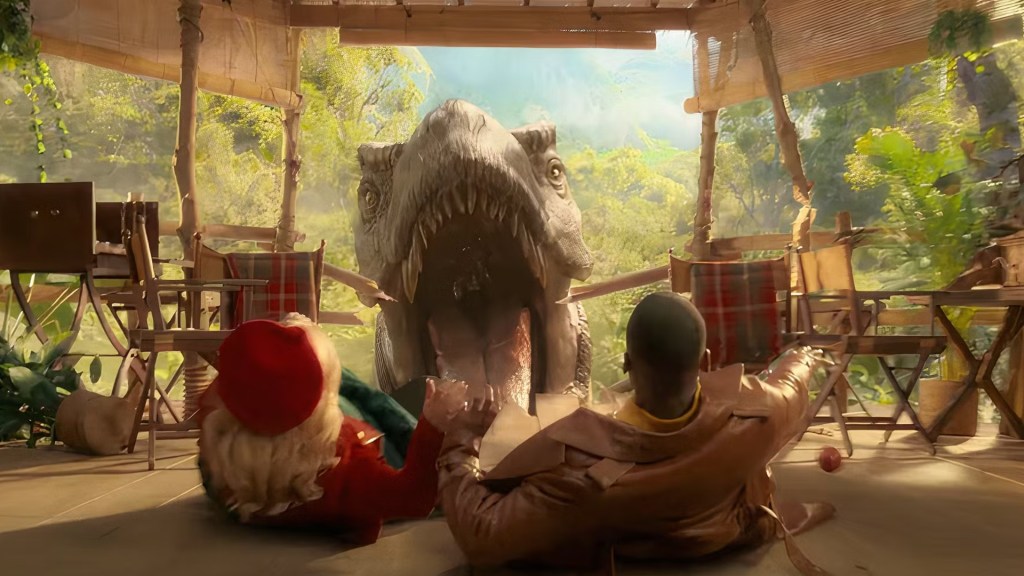 The Doctor catches up with himself at last and then heads off following Joy, who is possessed by the briefcase and is searching for a door far enough back in time, soon finding one back in prehistoric days. As she arrives The Doctor manages to insult her for being in a sad lonely room at Christmas and how name is crap, eventually mentioning her mother driving Joy to give an impassioned speech about how her mother died on Christmas Day 2020 and thanks to COVID restrictions she could only talk to her via a video message and not even see her, all while the Torries partied together and broke their own rules. This timely political outburst was enough to break the hold the case had over her and allow it to drop harmlessly to the floor, a rather harsh but effective way to save her life on The Doctor’s part. It’s not all good news though as the case gets eaten by a T-Rex…