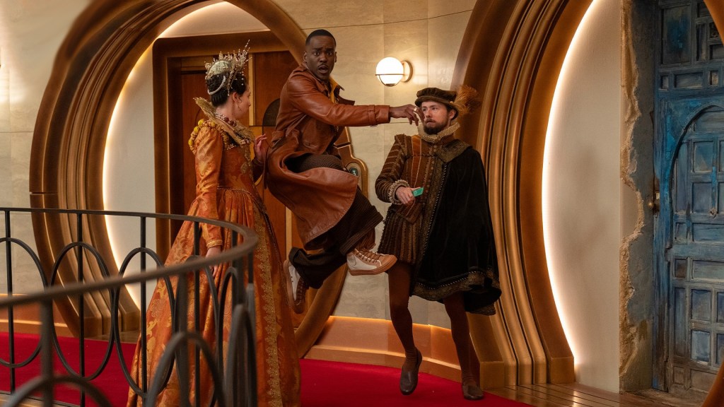 The Doctor appears and tries to get information about the case from its new holder but Joy’s angry interference causes her to get the case instead. After the Silurian’s death The Doctor takes a peek inside to find out it’s essentially a star ready to be born but will need several million years to “cook” before it can be used, so they’re searching for a room significantly far in the past to do it, humanity be damned (literally!) The case then exclaims that the current holder will be killed unless an admin code gets punched in so a later version of The Doctor appears and tells his earlier self the code in a classic bootstrap paradox, only for the later Doctor to take Joy and tell his old self he’ll have to be him via the “long way round”. This led to the highlight segment of the episode as The Doctor decides to stay in the hotel for a year, when the next portal opens, and gets to know hotel manager Anita (Steph de Whalley) while living a pretty normal life. It was very… pleasant, and heart-warming in a way the rest of the story fell short of.