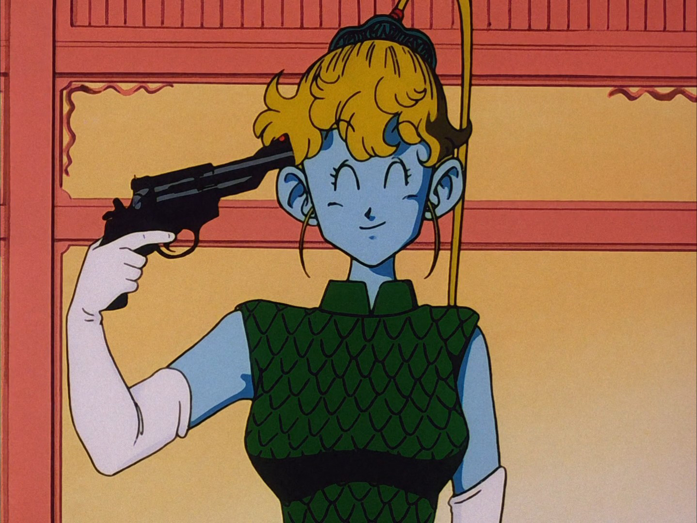 The next few bits of filler are focused on Goku’s journey across Snake Way, where first he falls off into Hell (or the “Home For Infinite Losers” if you want to get Saban censored dub about it) and has to pass two tests set by a pair of Oni called Goz and Mez, which he does, so they show him the way out but the way out turns out to be back at the start, luckily though Goku ate a special fruit that makes him much quicker… man, why Toei felt the need to make Goku’s journey even longer I don’t know… Anyway, that is swiftly followed up by Goku meeting Princess Snake at her palace, where Goku is treated like a King and constantly told to stay for one more meal or a sexy dance or, um, a game of Russian Roulette, which was unsurprisingly also cut from the censored dub. Goku eventually goes to leave only to find out that the whole palace is Princess Snake as she’s, well, just a giant snake and she was trying to digest Goku within her. Bloody weird, really. Goku flies out of her mouth and then guides her body around until she ties herself in a knot and then heads on his way. These are more episodes I have fond memories of, this was really the introduction to the more carefree and silly Goku (a.k.a. his true character), given my first exposure was the more serious Raditz stuff.