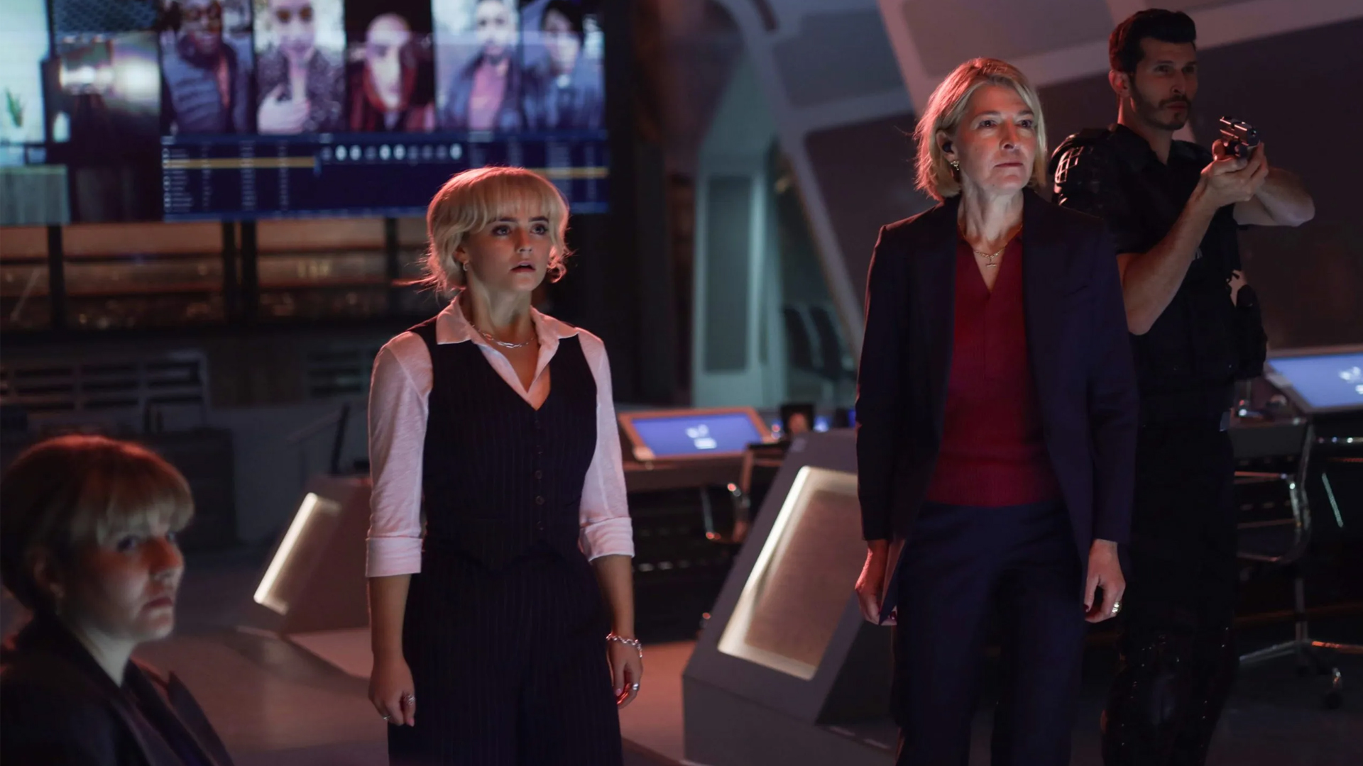 The episode actually opens up like the previous two, The Doctor (Ncuti Gatwa) and Belinda (Varada Sethu) arrive with their time anchor thingy and take a reading, only this time it’s London in 2007 and they just take the reading and then leave again, The Doctor giving 50p to a boy who sees this all go down. Many years later the boy grows up to be Conrad Clark (Jonah Hauer-King) who happens to see The Doctor and Ruby (Millie Gibson) take on an alien threat in a warehouse, so one year later in the present day he invites her to be on his podcast “Lucky Day” which talks about aliens and conspiracy theories in a positive light, acknowledging they must be real because by this point Earth has been invaded a few hundred times and UNIT has a massive skyscraper with their logo on it, so it’s kind of hard to hide. The two hit it off and a few months later in a small village while the two are out with his mates the aliens come back and come in for the attack, leaving Ruby having to call in UNIT, led by Kate Stewart (Jemma Redgrave), but it turns out it’s all a hoax! Conrad is the leader of a big online movement claiming UNIT is lying about all the aliens and just stealing tax payer’s money and they proved it by … pretending there was an alien threat and watching as UNIT mobilised to deal with it in order to save people…? Doesn’t the fact that they arrive en masse well armed to deal with something they couldn’t have scammed themselves prove they’re real?