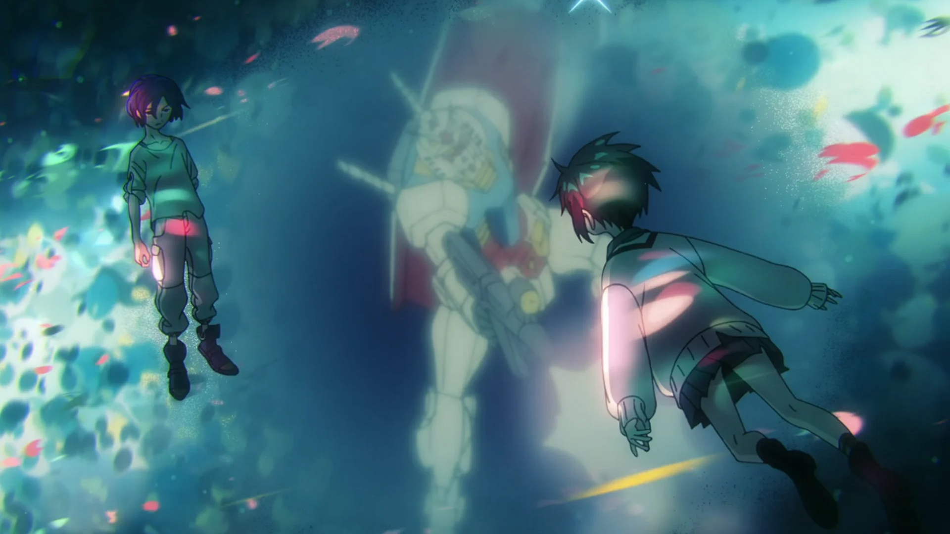 The show starts off in a somewhat familiar way as the previous Gundam series “The Witch From Mercury”, as we focus on our young female protagonist, in this case Machu, who winds up meeting stronger willed female Nyaan leading to the two joining up with a bunch of “Clan Battlers”, Clan Battles being duels between two sets of two mobile suits in space with the winners gaining fame and money. So similar to the duels in WFM only not at school and not sanctioned. We then soon meet one-and-done original series character Challia Bull who in this continuity has managed to live and is now hunting down the “Red Gundam” that Char once used (I’ll get to that in the next paragraph…) and when said Gundam appears he sends his top pilot in Xavier Olivette on board the new GQuuuuuuX mobile suit to take him down. What happens instead is that Xavier crashes and Machu pops on board the GQuuuuuuX and its Psycommu reacts to her far stronger and she soon runs off with it. Machu and Nyaan soon meet the Red Gundam’s pilot, Shuji Ito, and the three hit it off, with both females soon having a thing for him and Nyaan even piloting the GQuuuuuuX when Machu was otherwise occupied, all three seeing the sparkling “Kira-Kira” while they pilot (basically the flashy Newtype thought dimension-like thingy from the original series) With the GQuuuuuuX and the Red Gundam their Clan Battle team begin making waves while Challia is happy to let it happen…