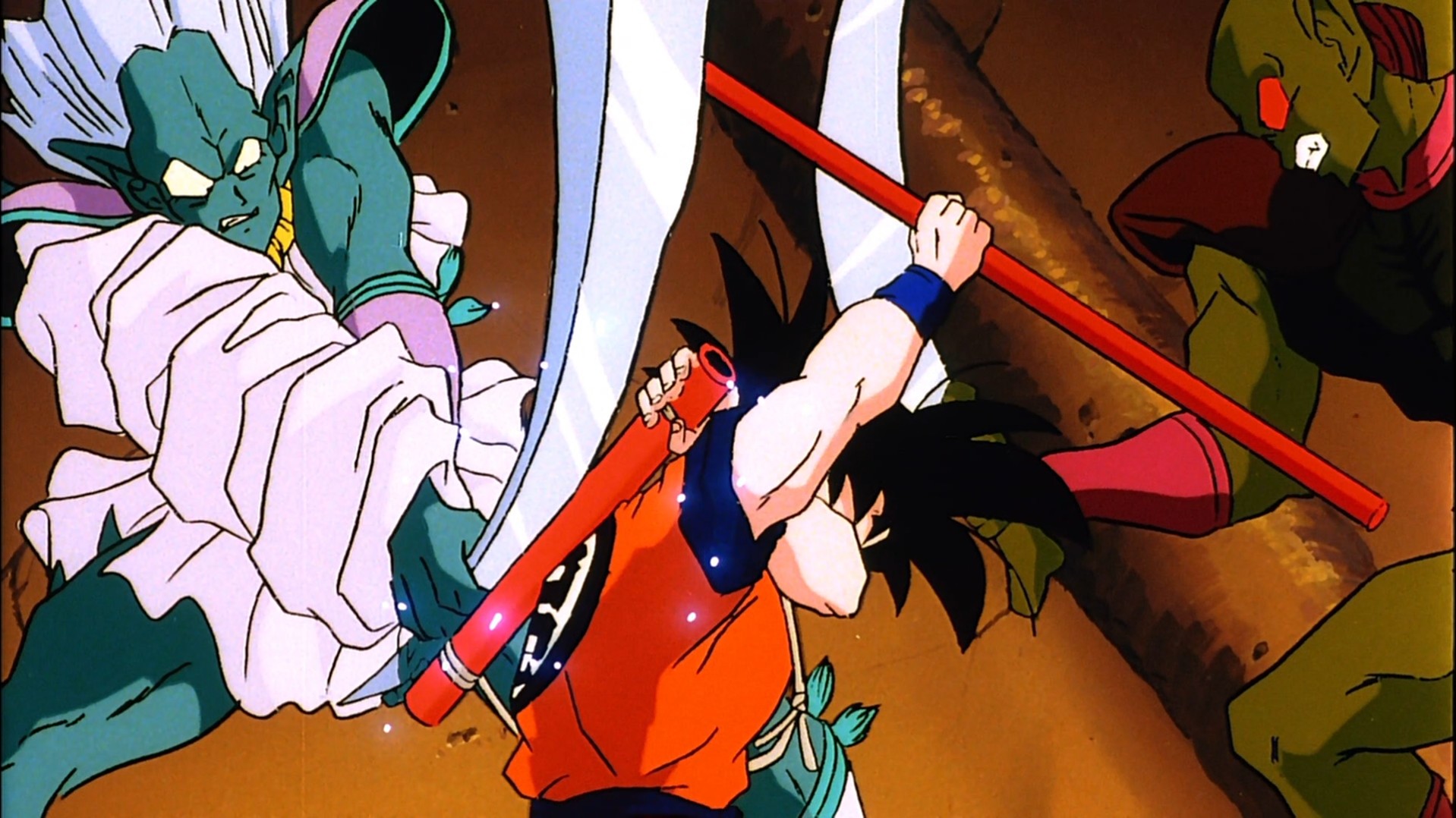 Goku fights off some of Garlic’s men using the Nyoibo, because it’s still that close to the original Dragon Ball! (though it should really be back at the bottom of Kami’s Lookout, but hey-ho…)