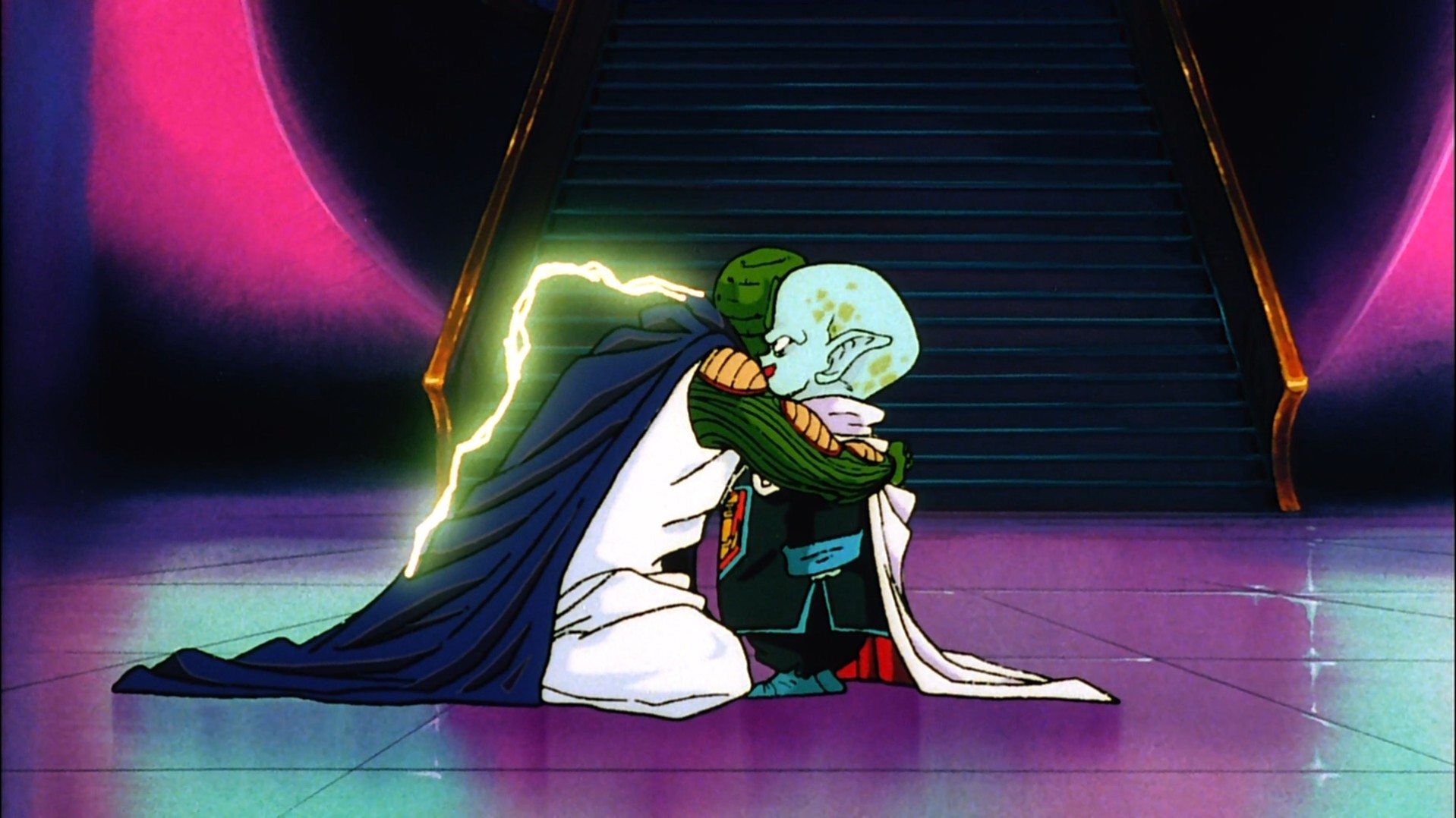 Krillin and later Piccolo arrive, and while Krillin gets literally pissed on by Gohan and then helps the kid escape Piccolo kills one henchman while Goku kills the other two, leading to the two of them confronting Garlic Jr. himself…
