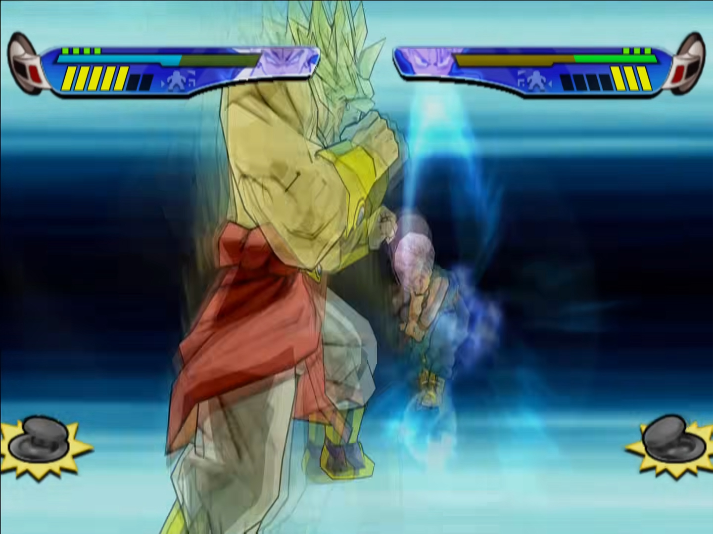The roster has all the Budokai 2 characters (minus the made up fusions and forms) plus brings Kid Gohan, first form Frieza and the earlier Cell forms back from the original game, but nobody else (sorry Dodoria, Zarbon and Android 19 fans!) Then it made the Saibamen and Cell Jr. playable after they were just non-playable opponents in the past and pushed the story right to the end of DBZ by adding kid Uub, making pretty much his only playable appearance in a fighting game. Then it was finally time to pull characters in from outside of Z as we got Kid Goku from Dragon Ball, Bardock, Cooler, Broly and Gogeta from the Z Films/TV Specials, and Ii-Shenron/Omega Shenron from GT, plus Vegeta and Goku got their Super Saiyan 4 transformations (as does Gogeta, for the record) from the same series. From here on out I’m pretty confident in saying no other fighter and very few DB games in general have been released that doesn’t include one of Bardock, Broly or Cooler, they’re sort of the go-to trio for content outside of the key series. It should also be said that both Mecha Frieza and Metal Cooler are in the game as well but as transformations for some reason, and ones not easy to pull of so I rarely, if ever, bothered…