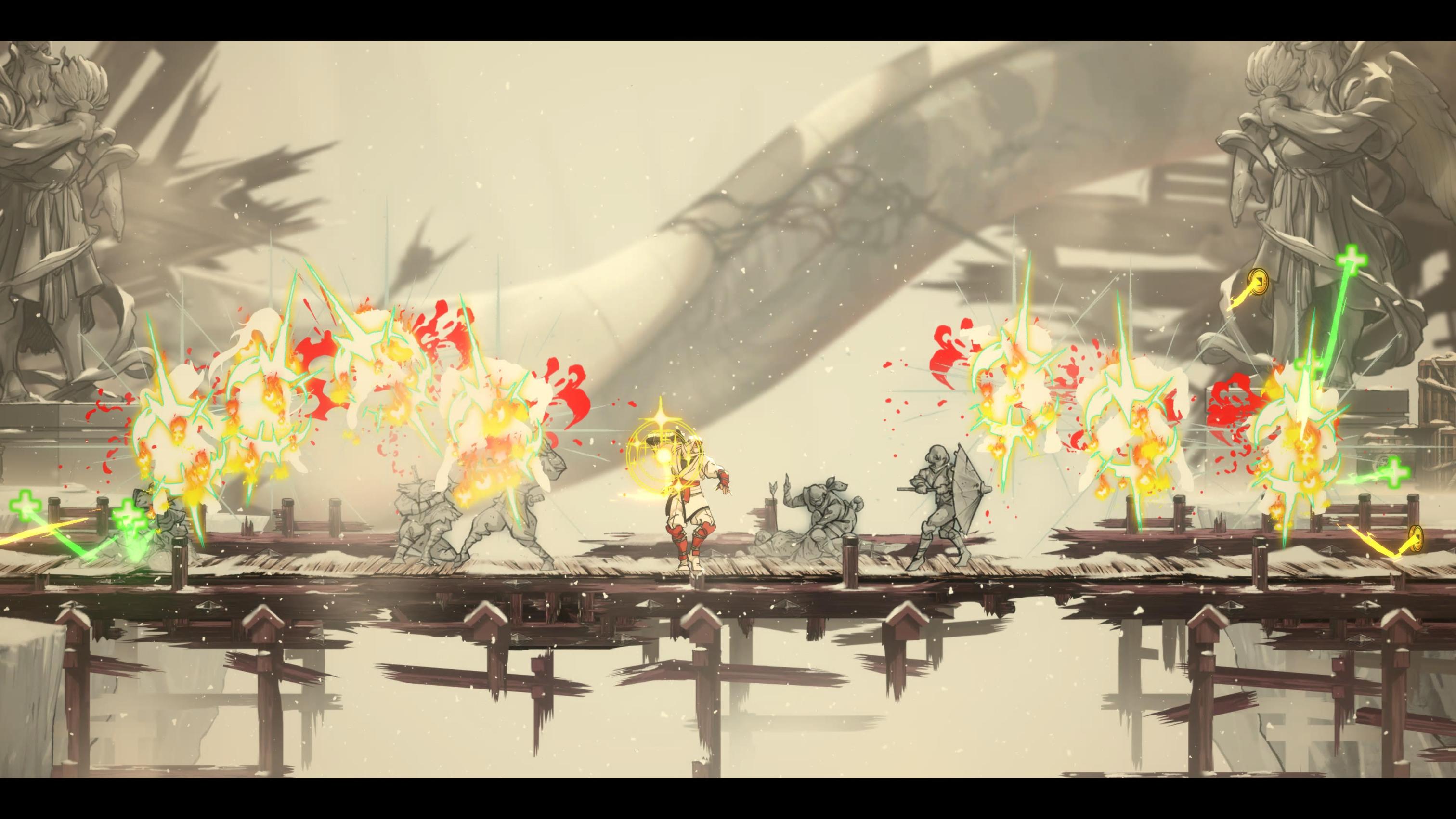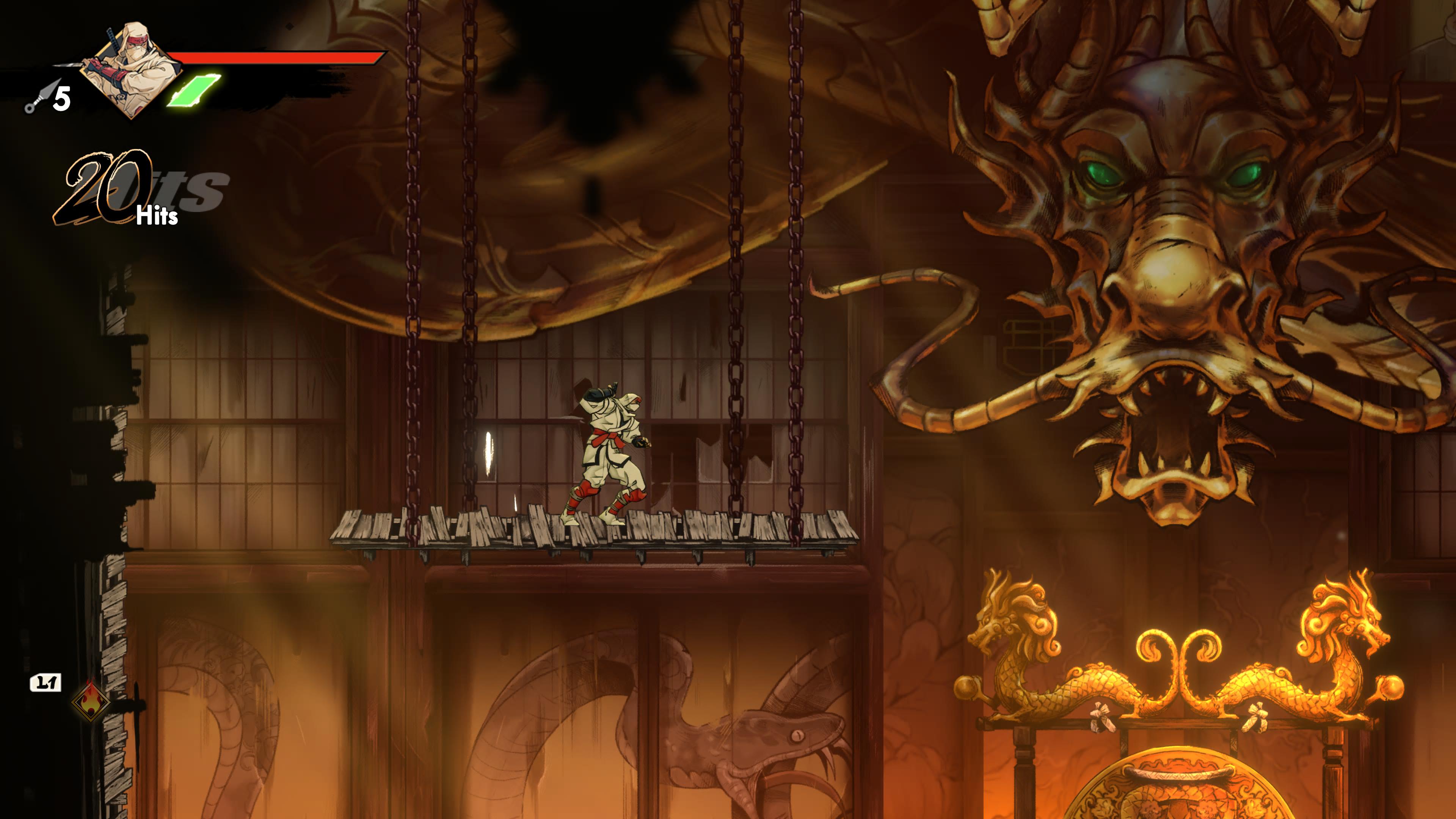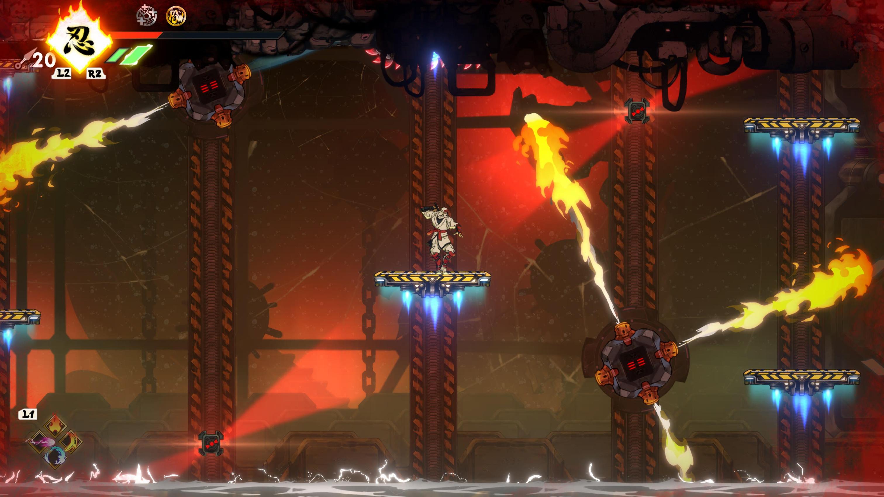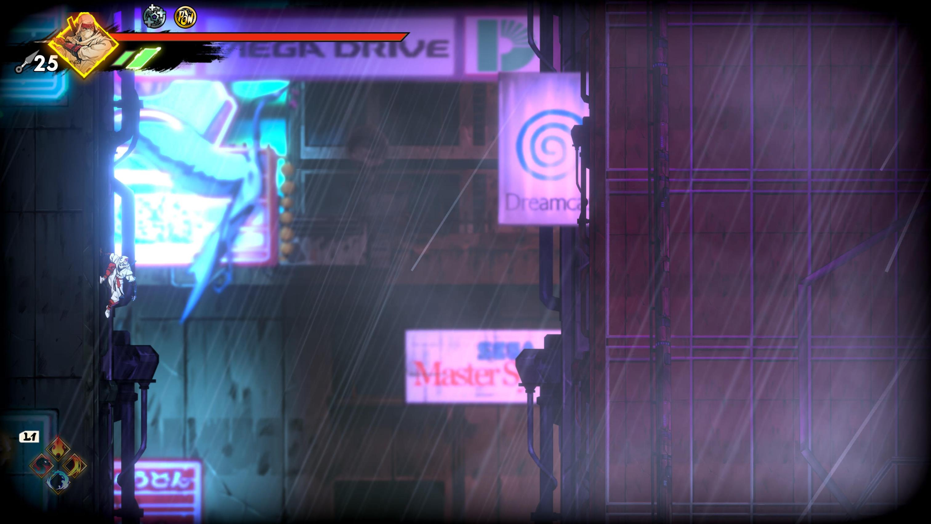 The gameplay is actually quite different from the Mega Drive classics, as you’re not solely relying on kunais and magic spells and killing enemies in one strike, in fact you use your katana more than anything else in this game and enemies often take a lot of hits to defeat. You have a light and heavy attack and can combo with presses of the two buttons, plus a whole bunch of combos revolving around jumping strikes, dashing strikes and other such things that you can unlock with collectables. You can also do “executions” to injured enemies, and if more than one enemy is down on health at the same time you do a chain execution to all of them, which is very visually pleasing. You do still have kunais which run out after certain use, plus magic spells that need to charge up and a new “Revenge gauge” that builds up the more you get hit (and carries over from death) that allows you to use one of four extremely powerful spells once it’s done filling up, from screen-clearing attacks to one that completely refills your health (which I used a lot when on tough bosses, I’ll admit) I have to say that much like the great combat in Streets of Rage 4 you really feel each hit you get thanks to the combination of animation, sound effects and controller rumble. It’s extremely satisfying and got me through any notion of repetitiveness due to just how fun it was.