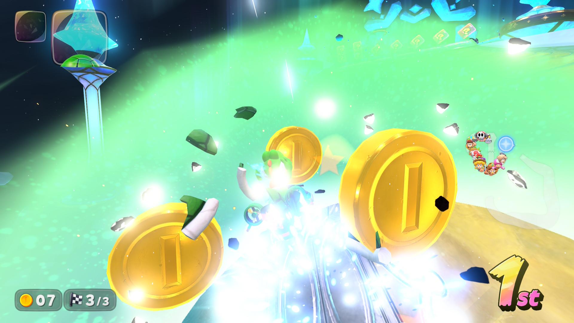 Tried to grab a screenshot of the Blue Shell just about to hit me, but I missed by a second it seems…